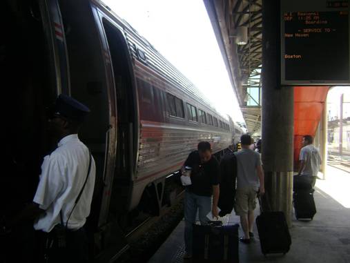 I got on the train and rode to Union Station. Metro was doing track work. As a result, they were running trains on a single line which caused some delays. However, I got to Union station in plenty of time. I filmed the train departing and heading into the station. I went to await the boarding of Amtrak Regional train #88. I saw that the westbound Cardinal was also boarding, but there was nowhere I could get a shot of it.