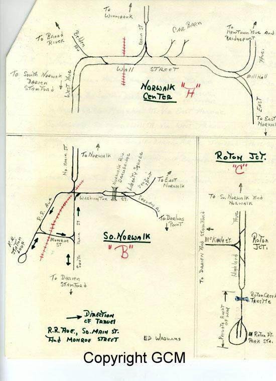 Some maps of Norwalk, Connecticut Trolley routes. Perhaps unique maps.
