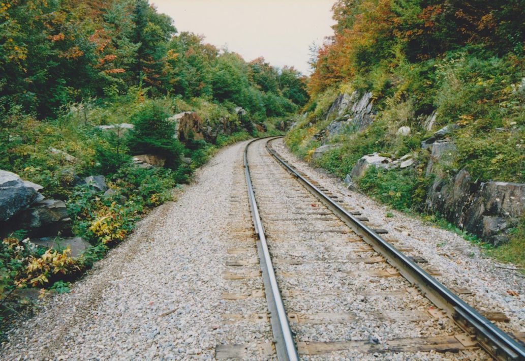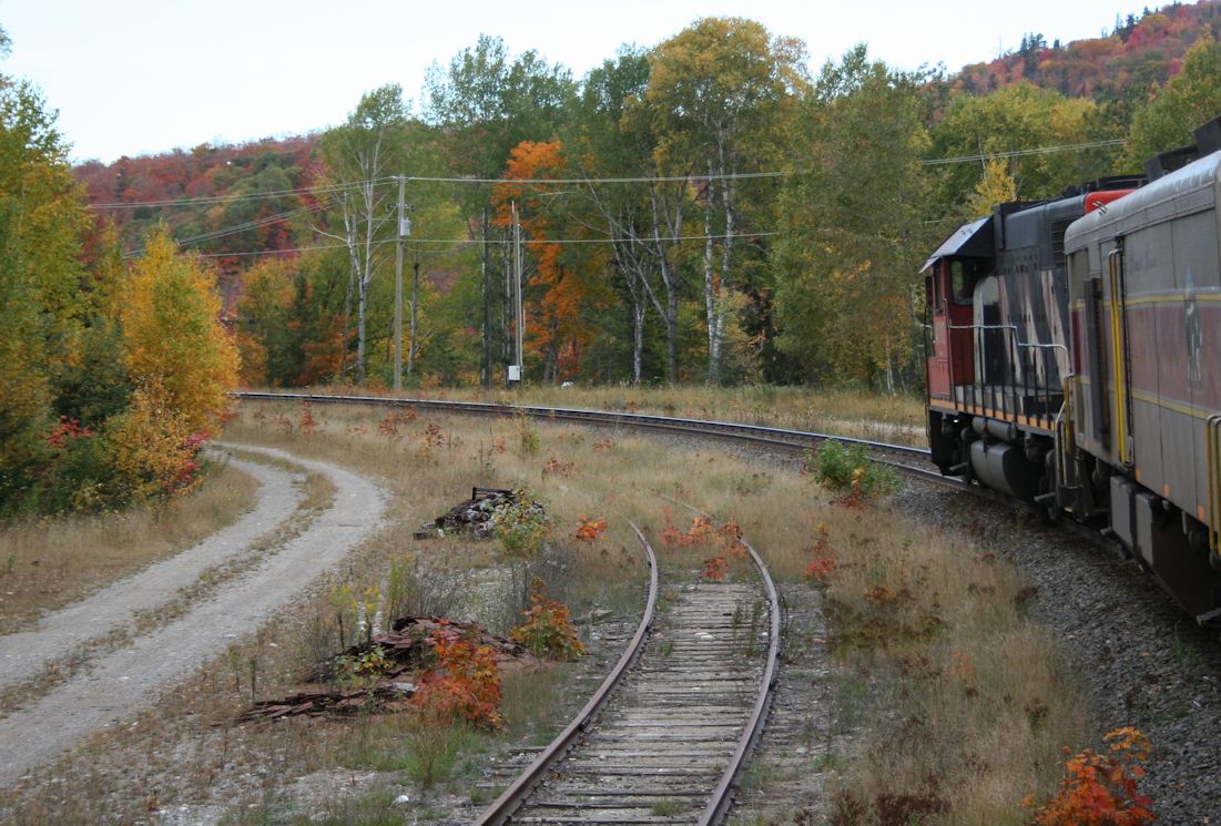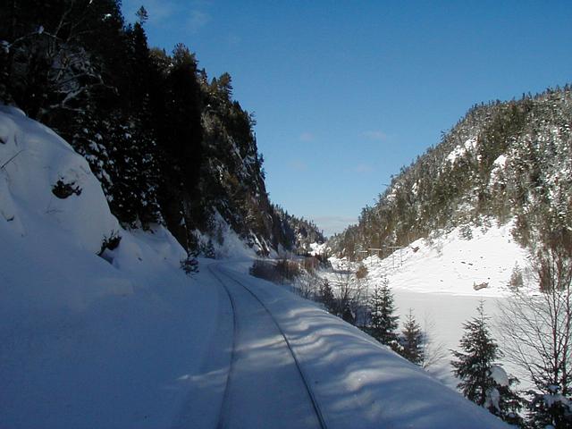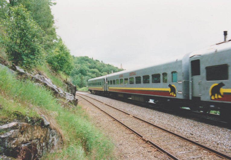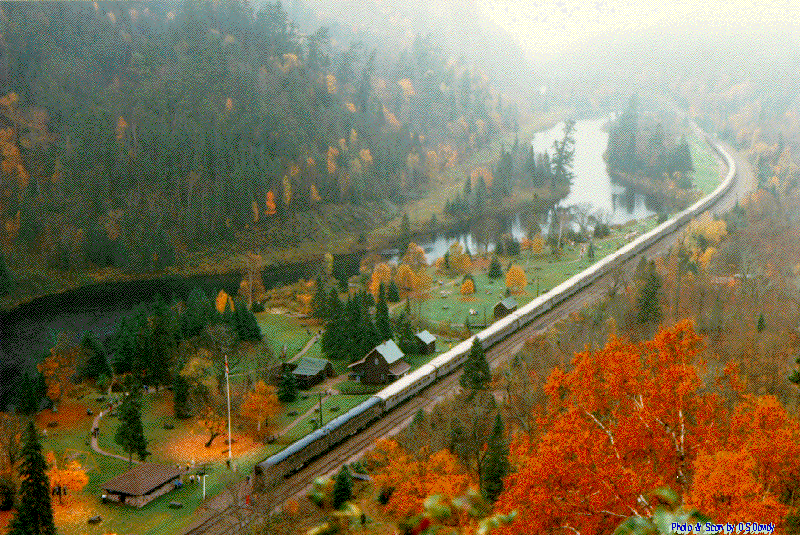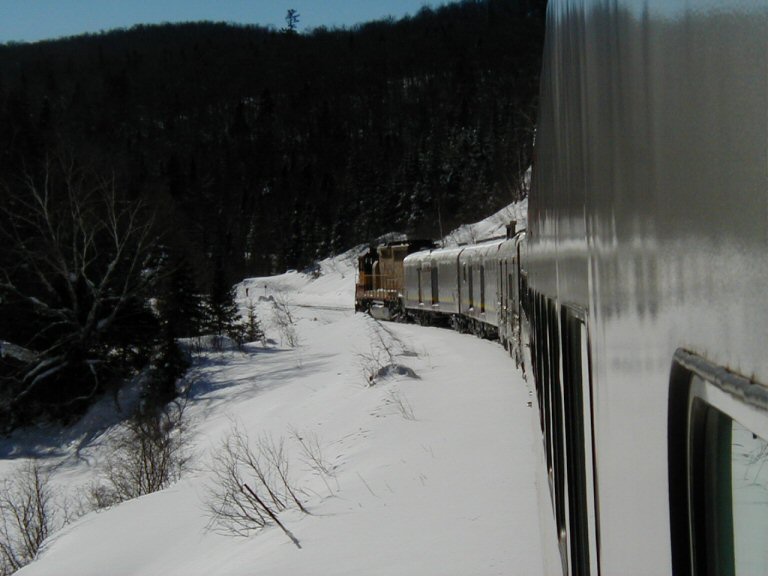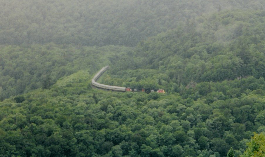 Canyon Tour The southbound Agawa Canyon Tour Train twists its way uphill from the canyon. near Agawa Canyon 2004 Mark Becker
