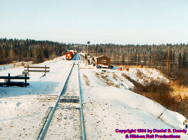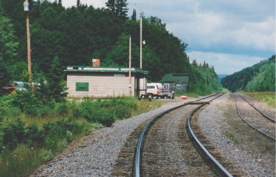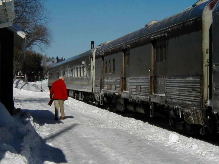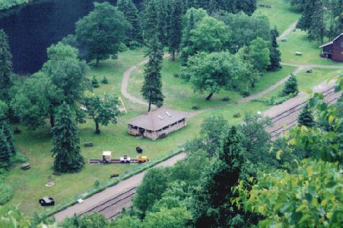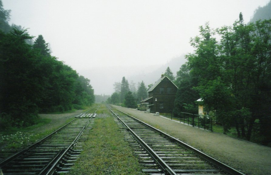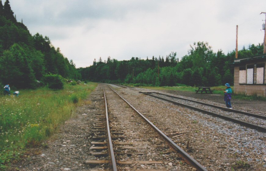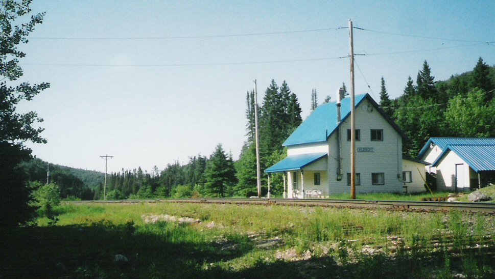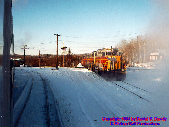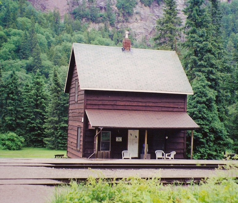Several shots of the regular train making its trip south. The station platform shot is at Hawk Junction. 2001 Richard Schivley