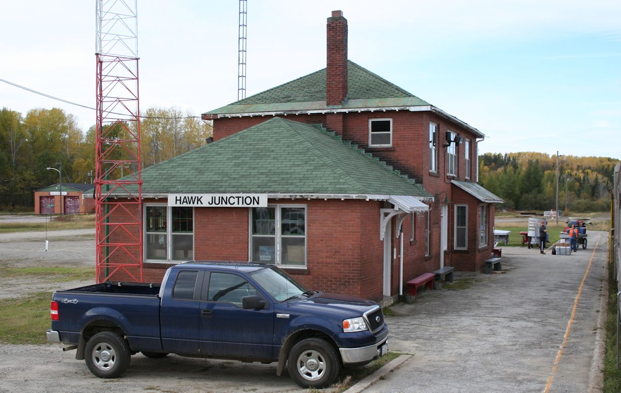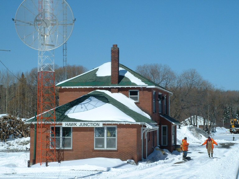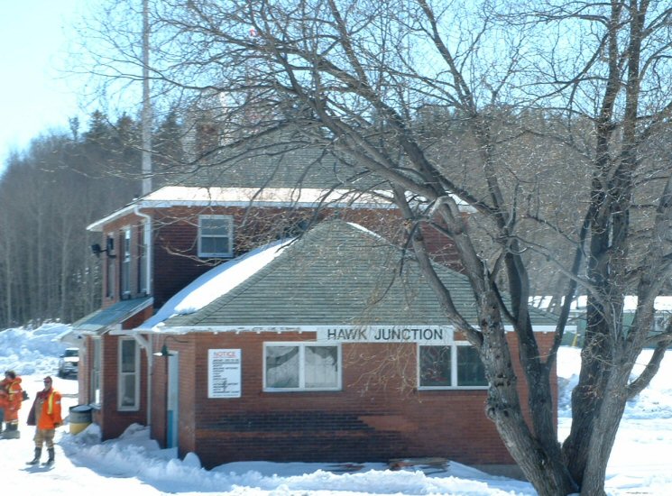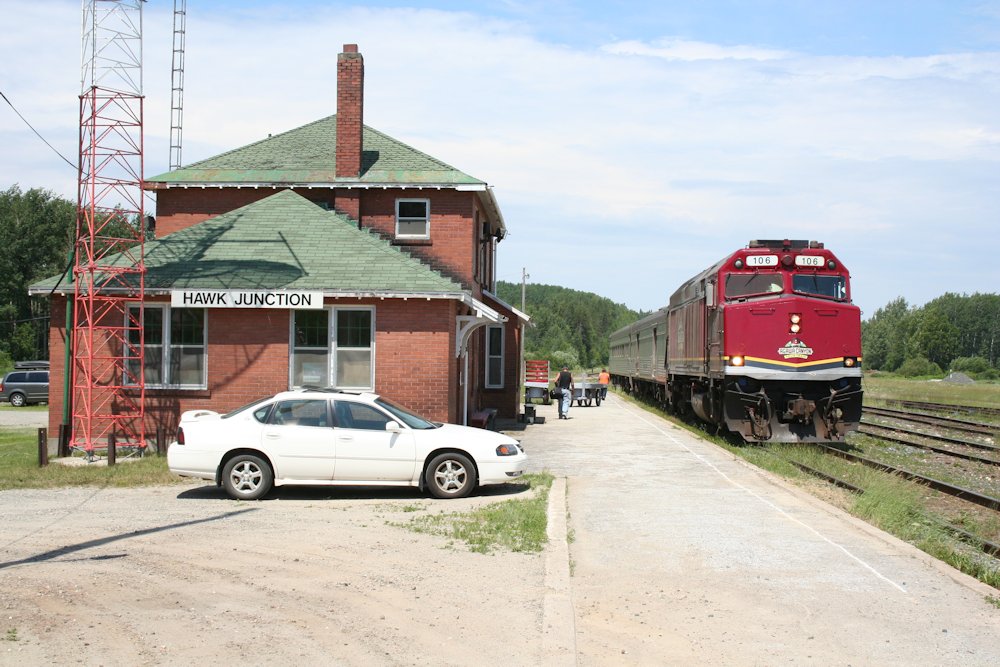 Passenger The southbound passenger train makes its station stop at Hawk Junction. Hawk Junction 2009 Brendan Frisina