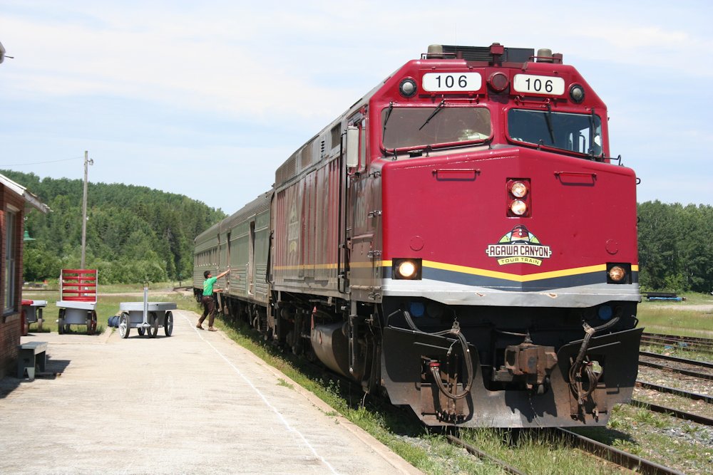 Tour Train Southbound Agawa Canyon Tour Train. The Rio Grande painted equipment was used on the "Ski Train" in Denver, CO, and was purchased by CN early in 2009 for use on the Algoma Central. Northland 2009 Brian Switzer
