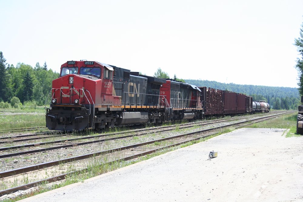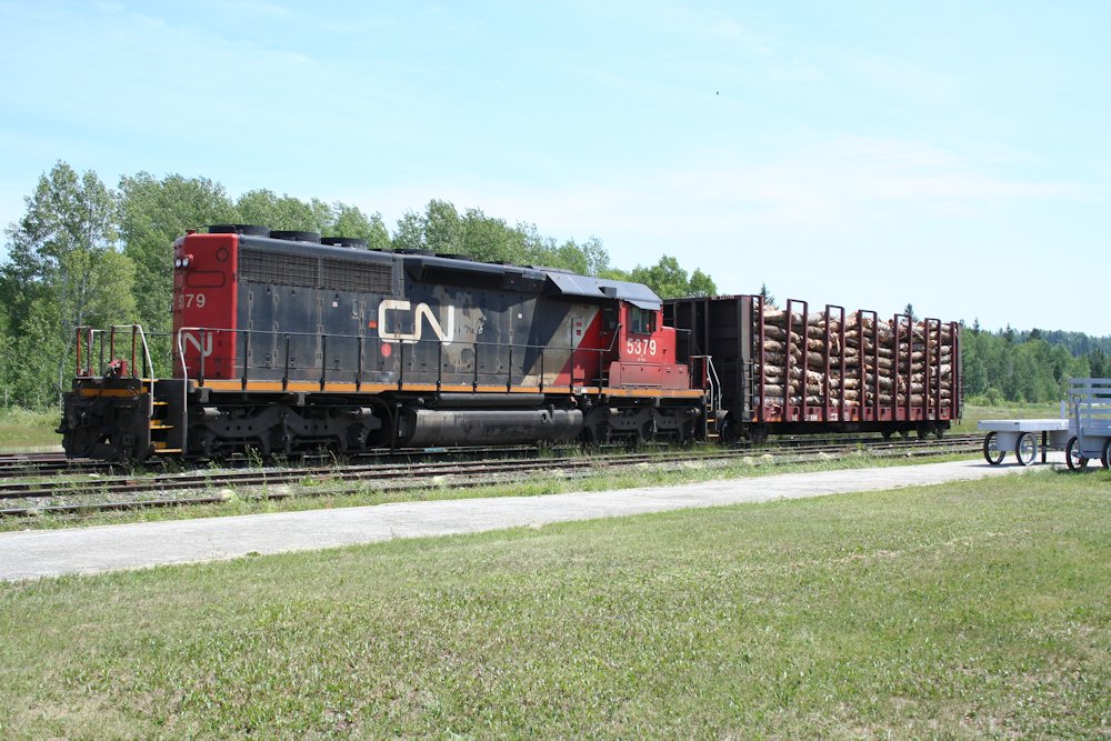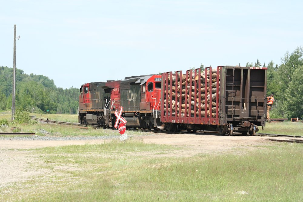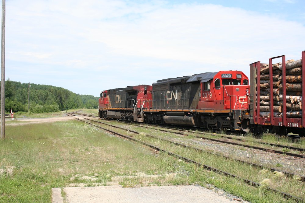 Freight This SD40-2 and loaded pulpwood car were set off by the northbound freight before it continued north towards Hearst. Hawk Junction 2013 Chris vanderHeide