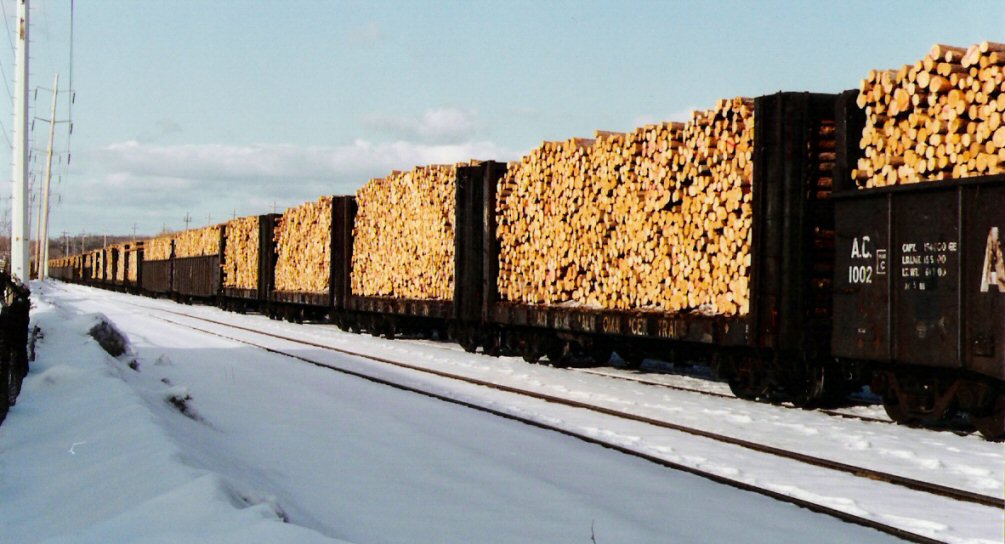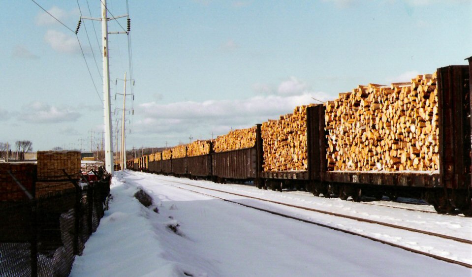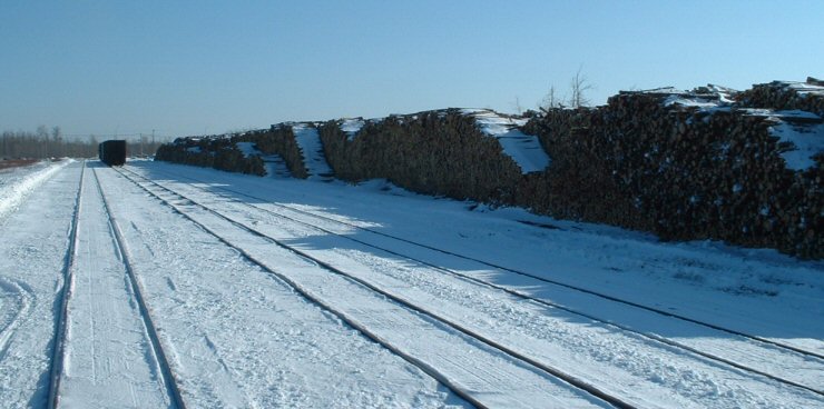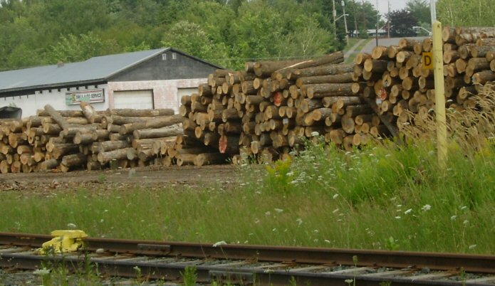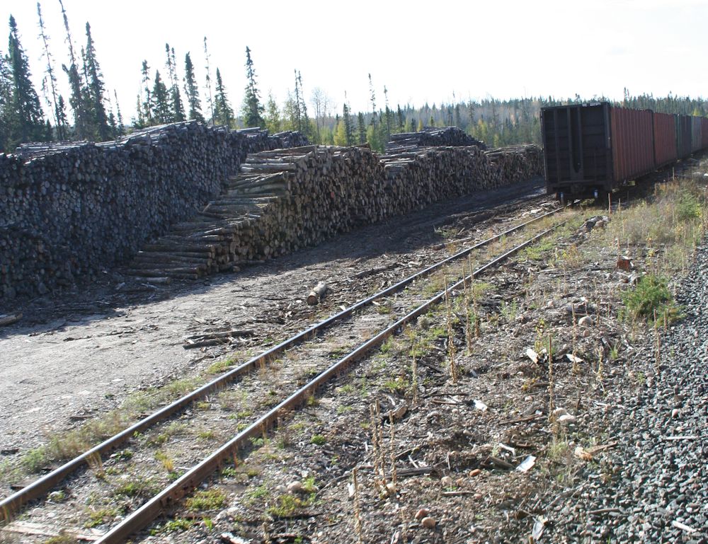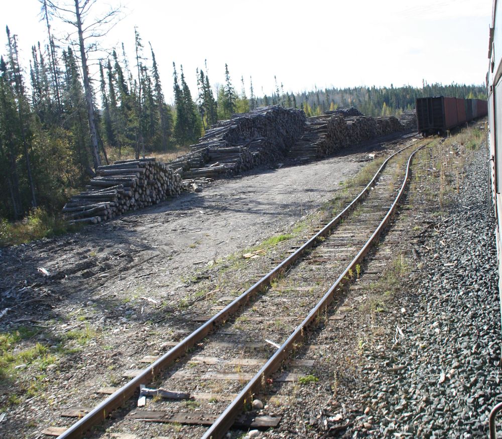 Two views of Wyborn (mile 294.1, just south of Hearst Junction) showing a massive pile of pulpwood logs. Wyborn   Kris Roenigk