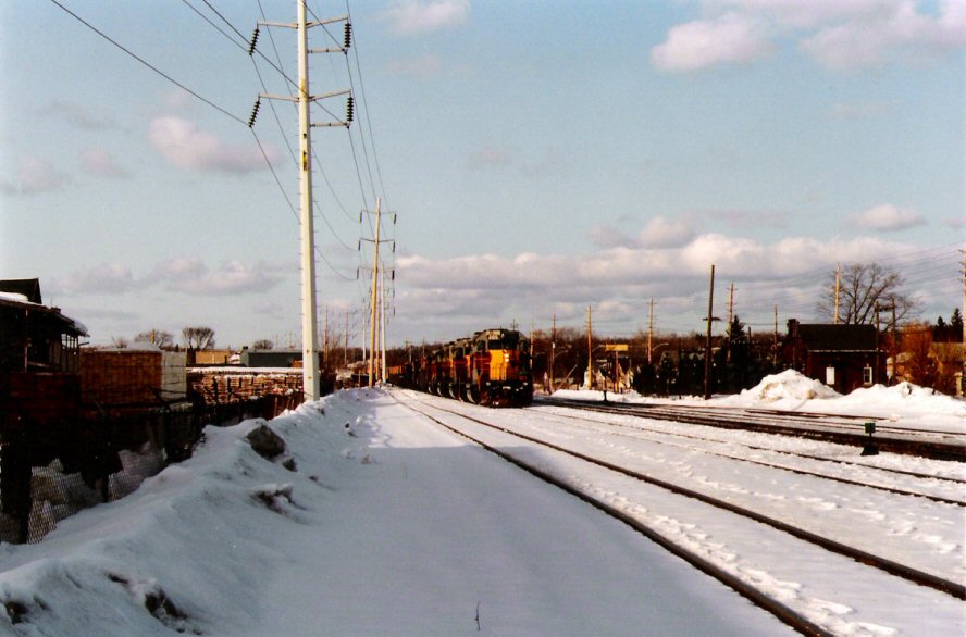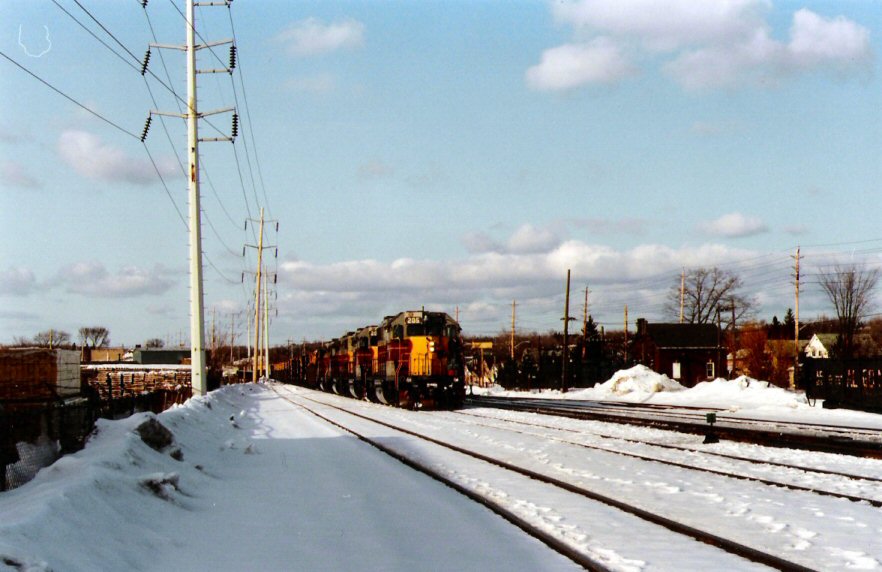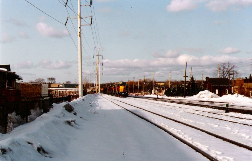 No. 2 The southbound regular passenger train arrives at Steelton. Sault Ste. Marie 1996 Blair Smith