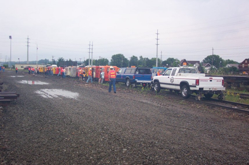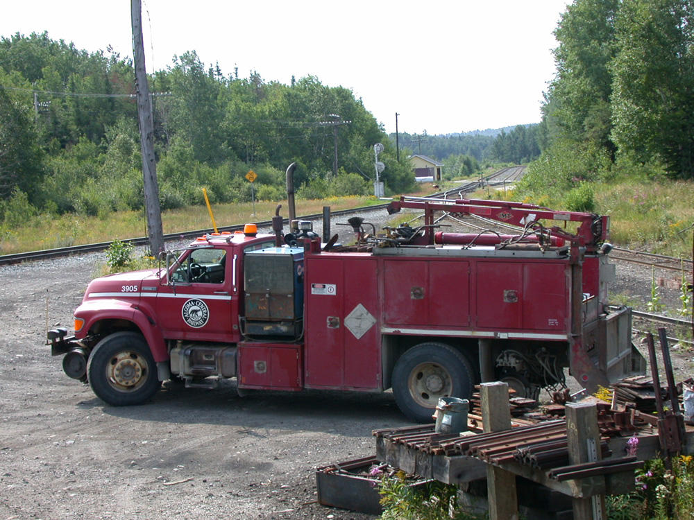 Road Crane The very large road crane brought in to re-rail CN 5621. Hawk Junction 2002 Blair Smith