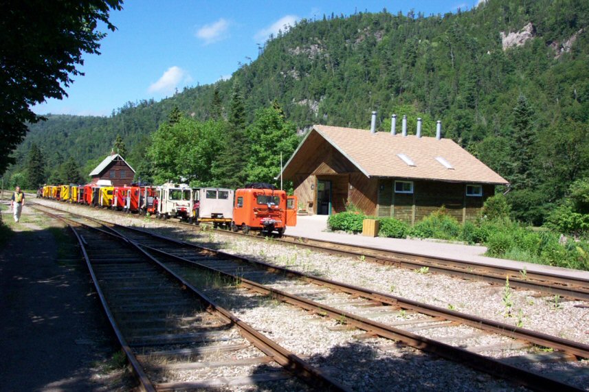 5 shots of a speeder excursion on the ACR. First 4 at the yard in Sault Ste. Marie, 5th shot is at Agawa Canyon Park. Sault Ste. Marie 2002 Nick Masney