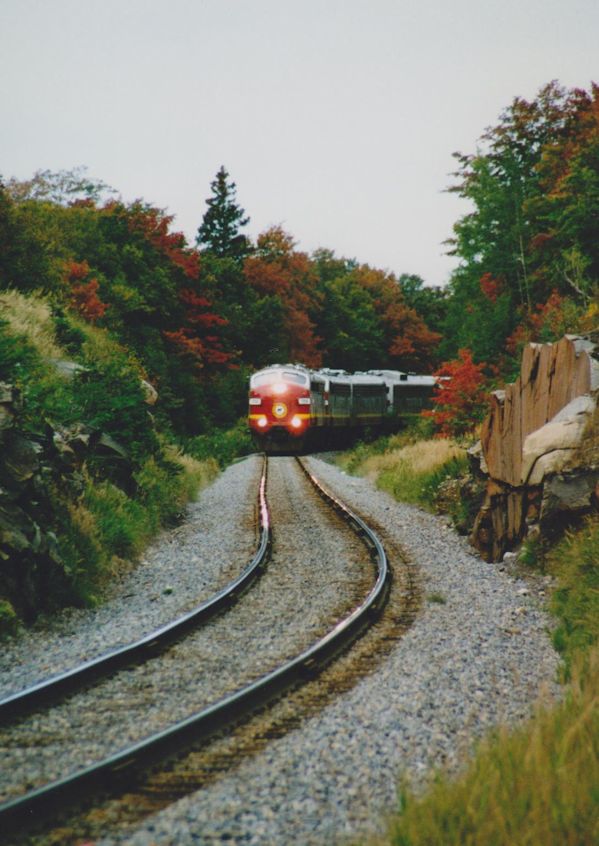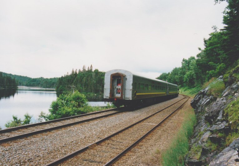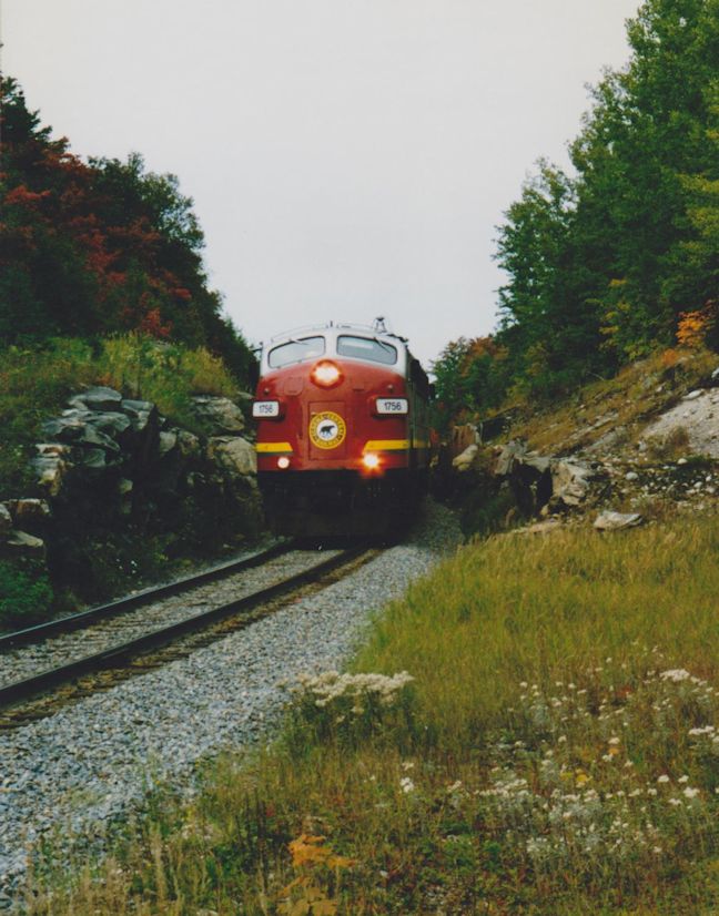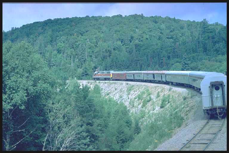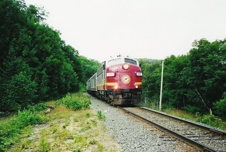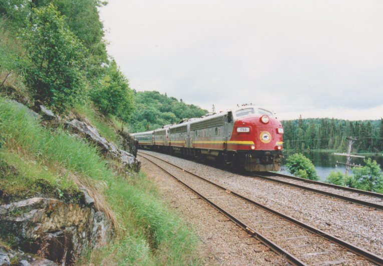 Passenger The regular passenger train, led by FP9 1755 passes Mile 92 near Montreal Falls. Mile 92 2004 Mark Becker