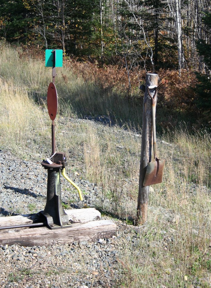 Switch Stand Mainline siding switch stand with post rack for shovel and switch broom for clearing ice from points in the winter. Perry 2013 Chris vanderHeide