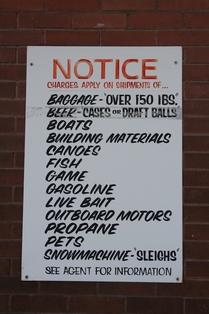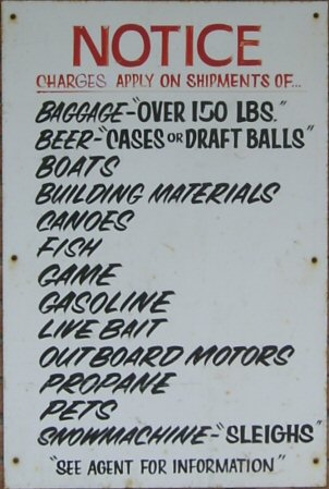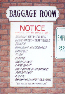 Baggage Room Sign This sign appears beside the door to the baggage room in ACR stations. This sign gives a sampling of some of the items the baggage handlers on trains 1&2 can expect. Sault Ste. Marie 2000 Chris vanderHeide