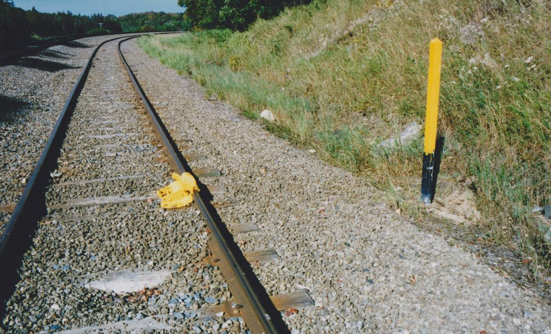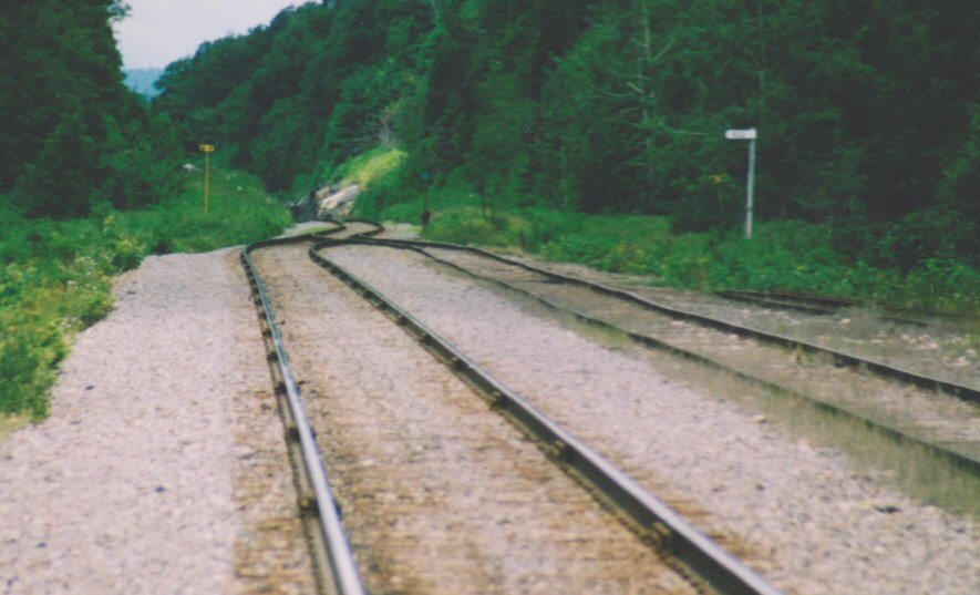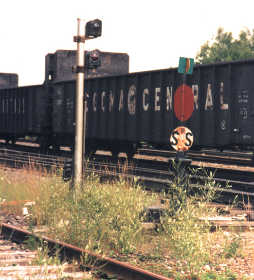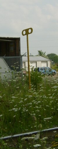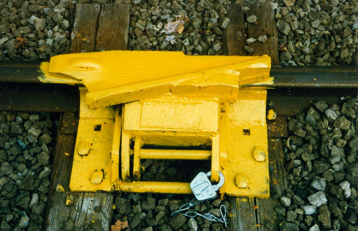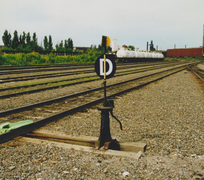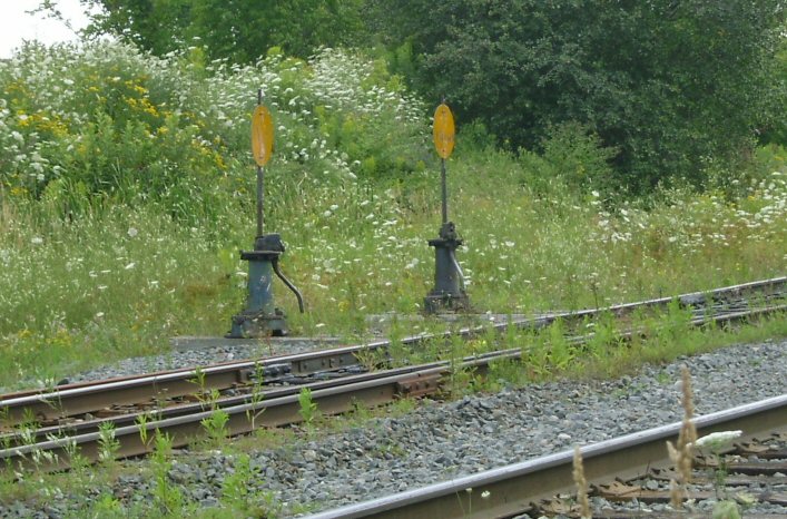 Derail - derails without switch stands and targets are marked by a yellow post. Frater Sep 1996 Blair Smith