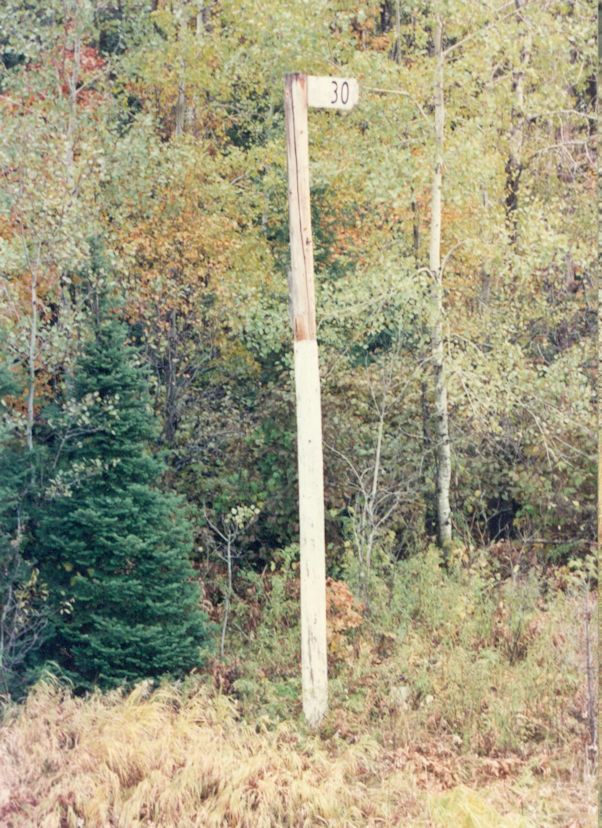 Milepost 30 Standard ACR wooden milepost. Searchmont Aug 1993 Blair Smith