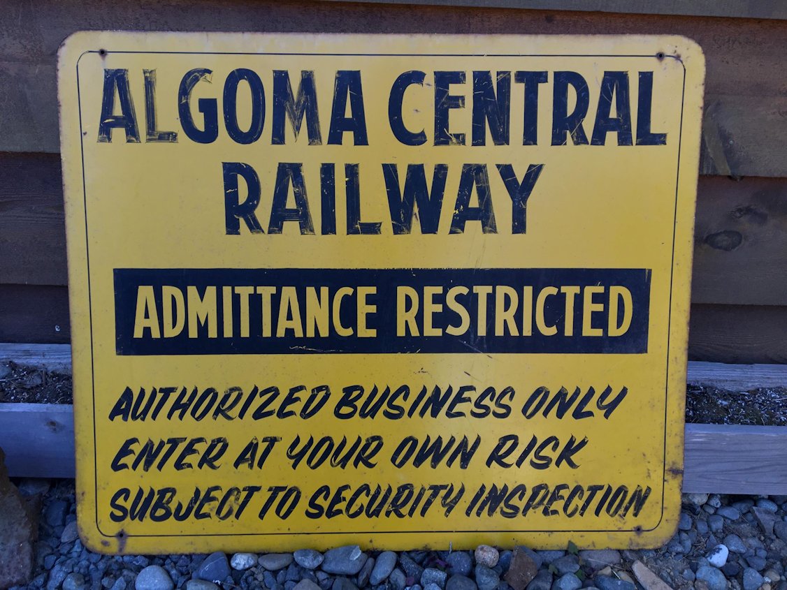 Restricted Access Algoma Central Railway restricted access sign indicating "Admittance Restriction". Possibly from Michipicoten harbour. Nick Acciavatti