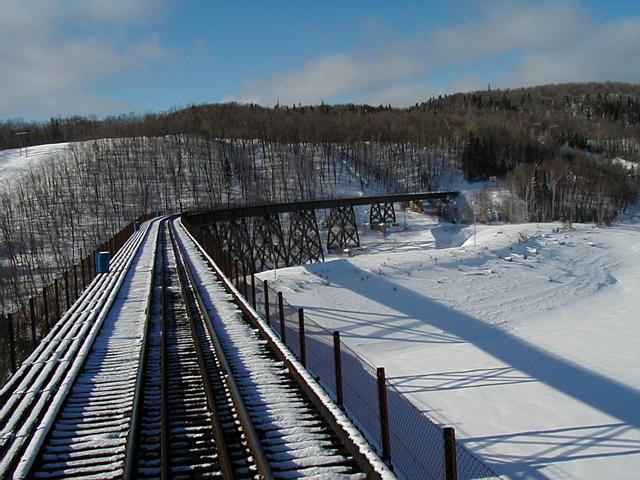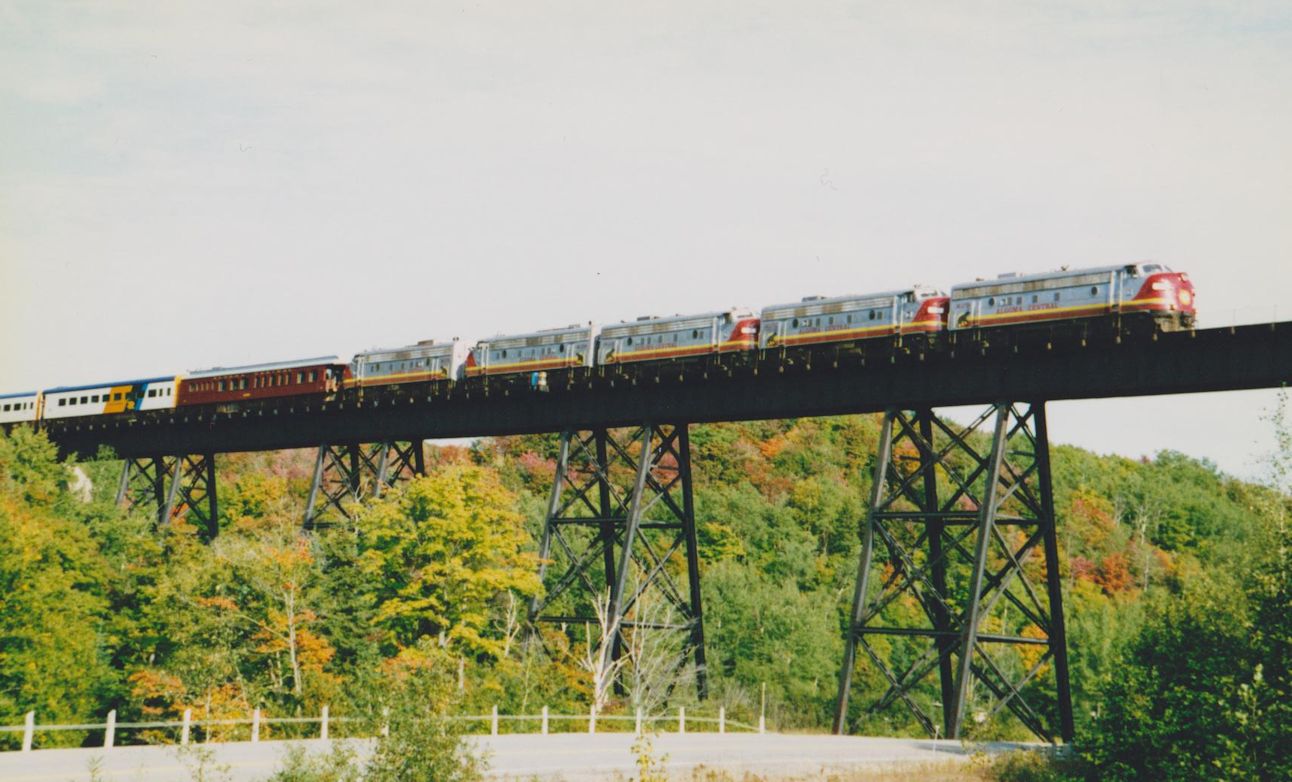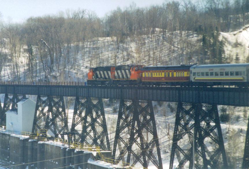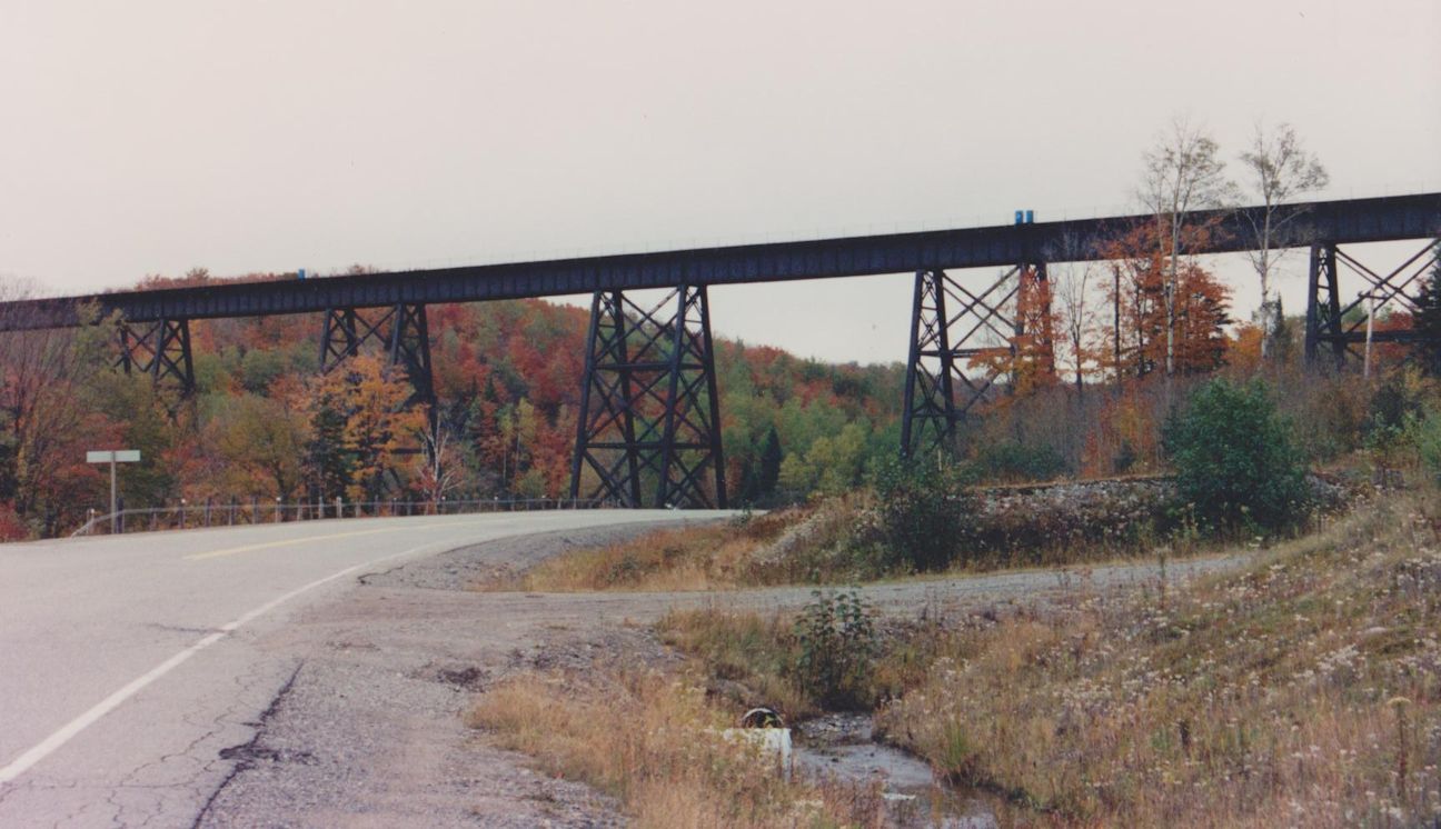Trestle The southbound Agawa Canyon Tour train crosses the scenic Bellevue Trestle. Bellevue 1996 Blair Smith