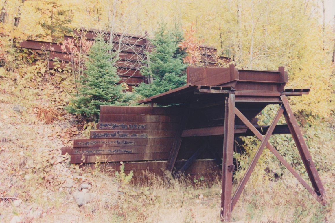 Coil Cradle Non-permanent crade for transportation of steel coils mounted on a bulkhead flatcar. Sault Ste. Marie 1997 Blair Smith