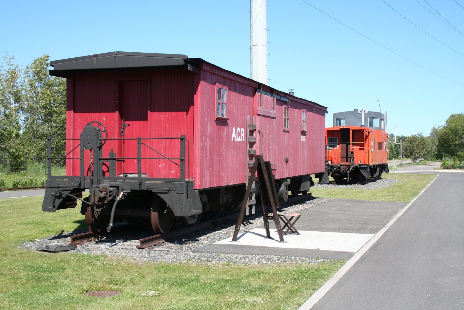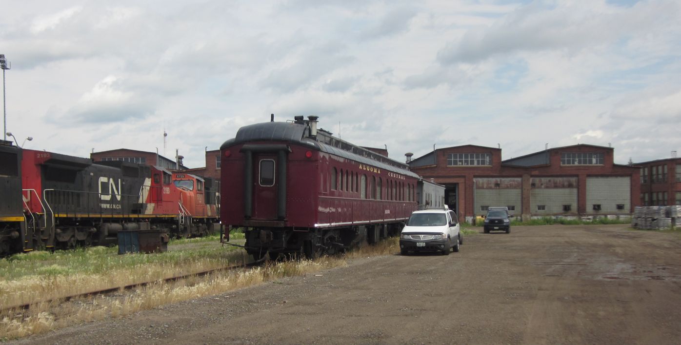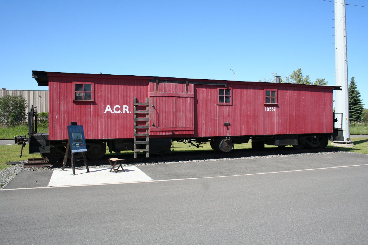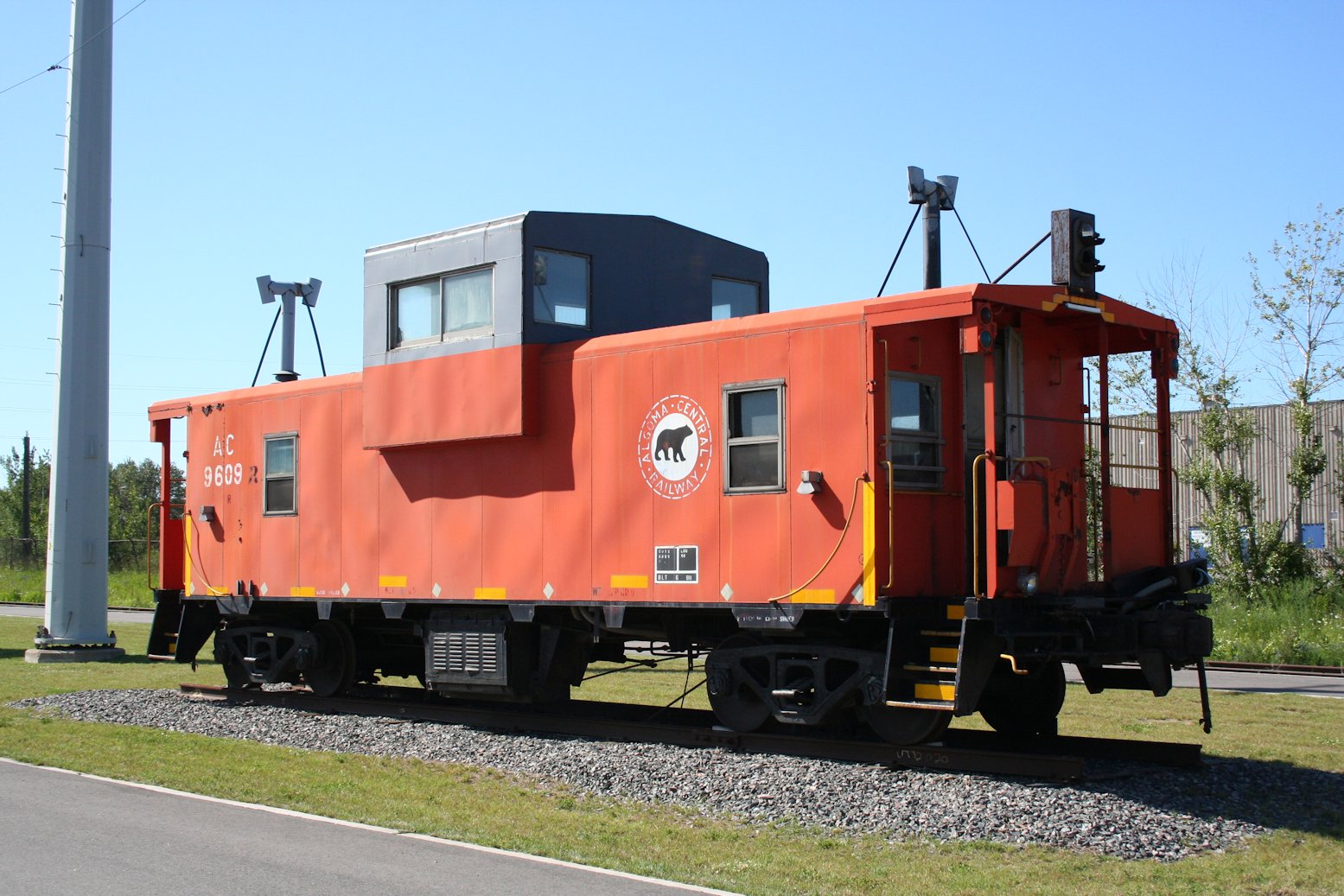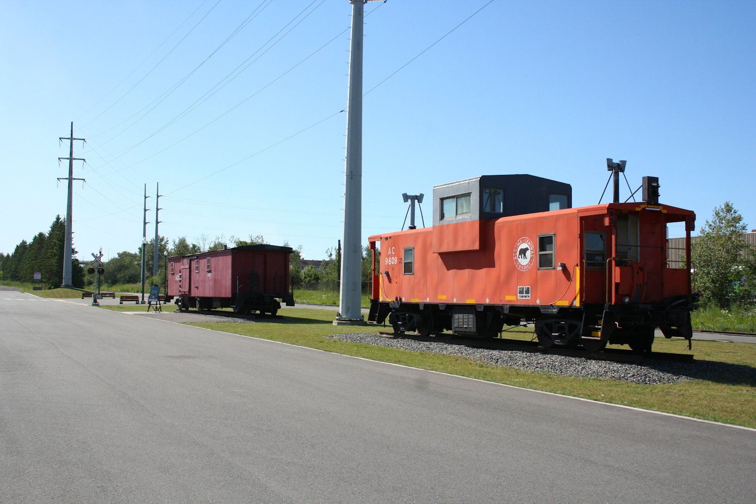 Also outside the station is a display of historic equipment consisting of AC 10557, a "recreation"/museum display representing the famous Canadian group of artists called the "Group of Seven" which spent a significant amount of time painting subjects in northern Ontario and travelling and living on the Algoma Central in a converted boxcar, and steel caboose AC 9609.