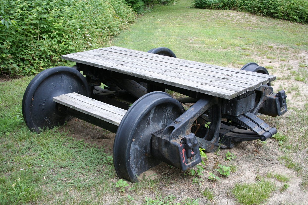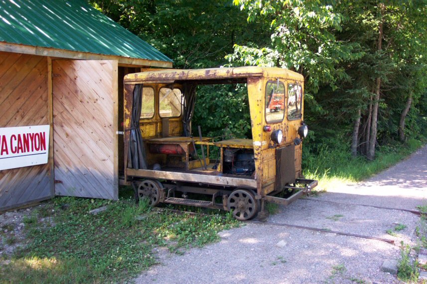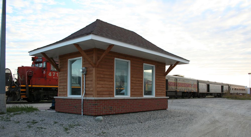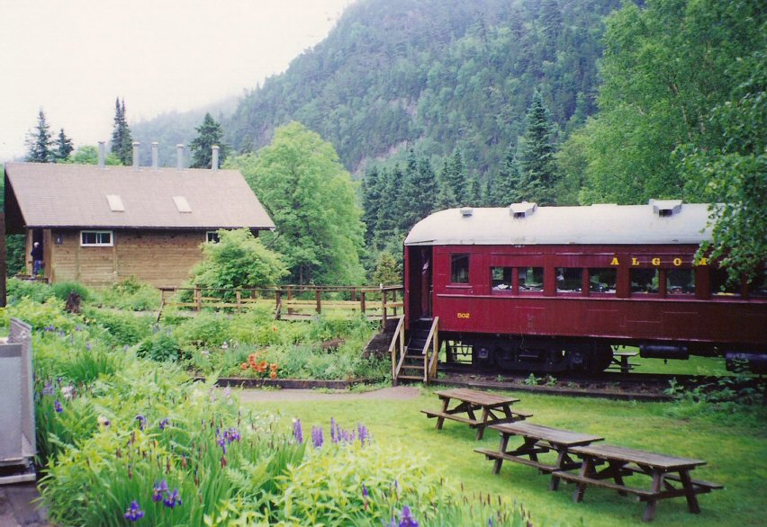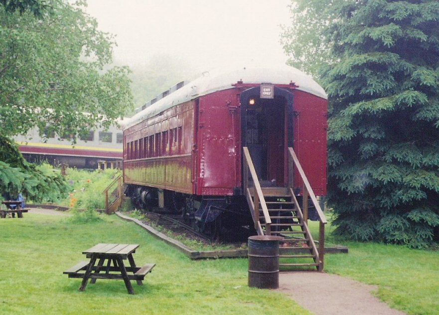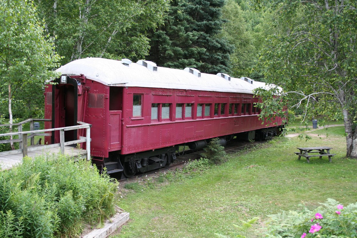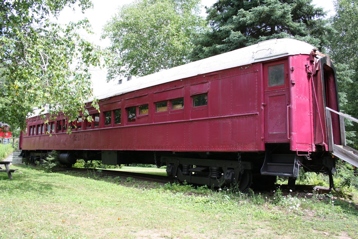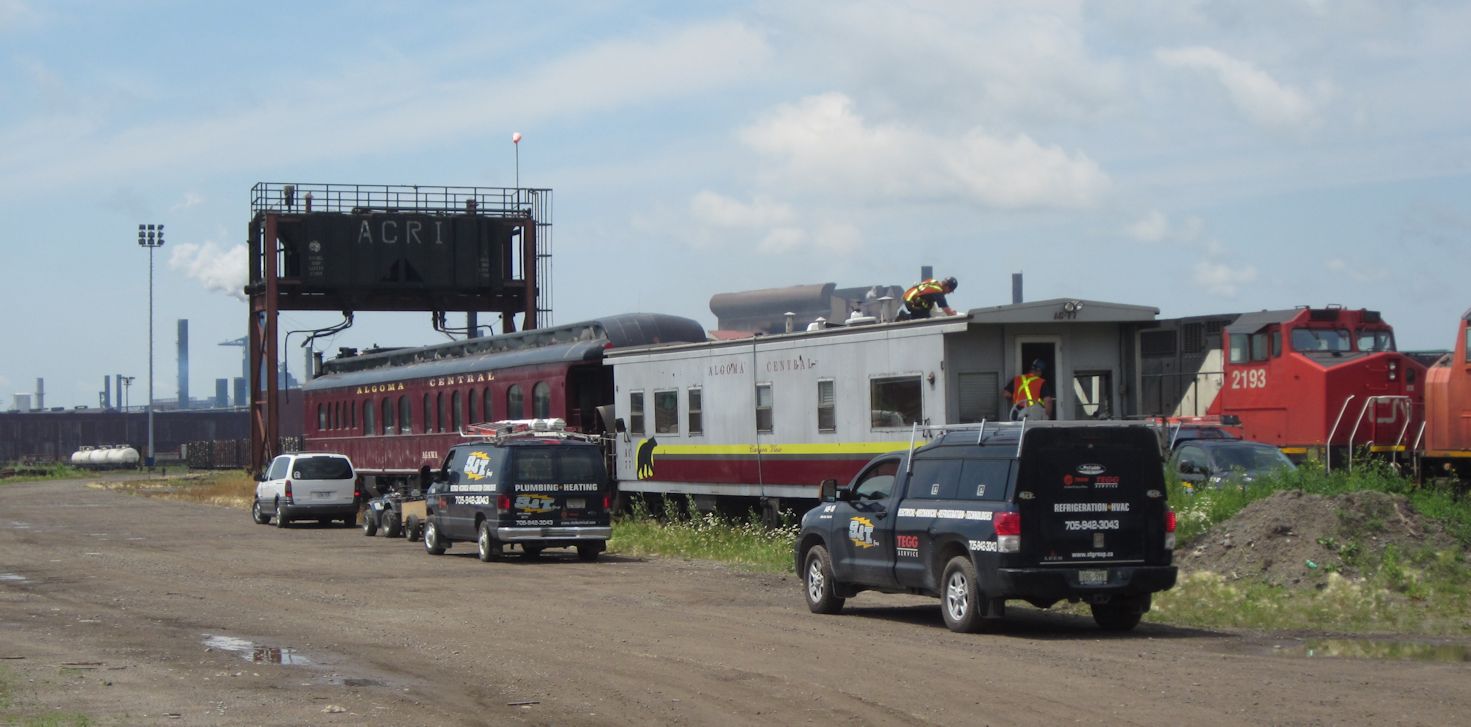 Also outside the station is a display of historic equipment consisting of AC 10557, a "recreation"/museum display representing the famous Canadian group of artists called the "Group of Seven" which spent a significant amount of time painting subjects in northern Ontario and travelling and living on the Algoma Central in a converted boxcar, and steel caboose AC 9609.