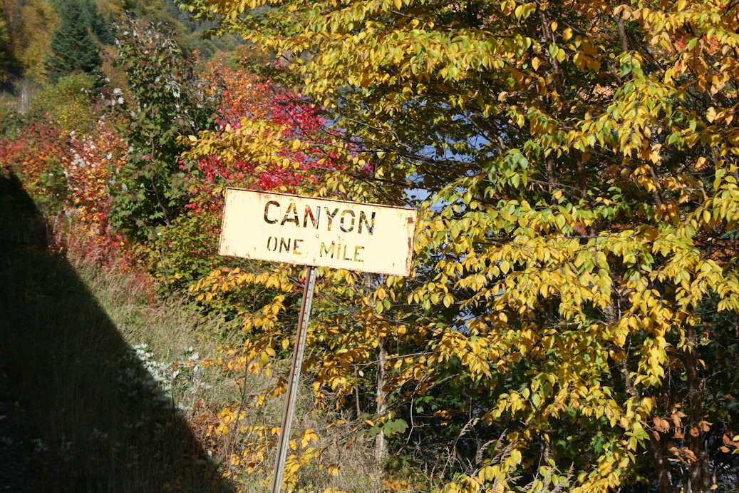 Mileboard Canyon south Mileboard. This is the typical mileboard style along the ACR with a metal sign with stamped out lettering. Agawa Canyon 2013 Chris vanderHeide
