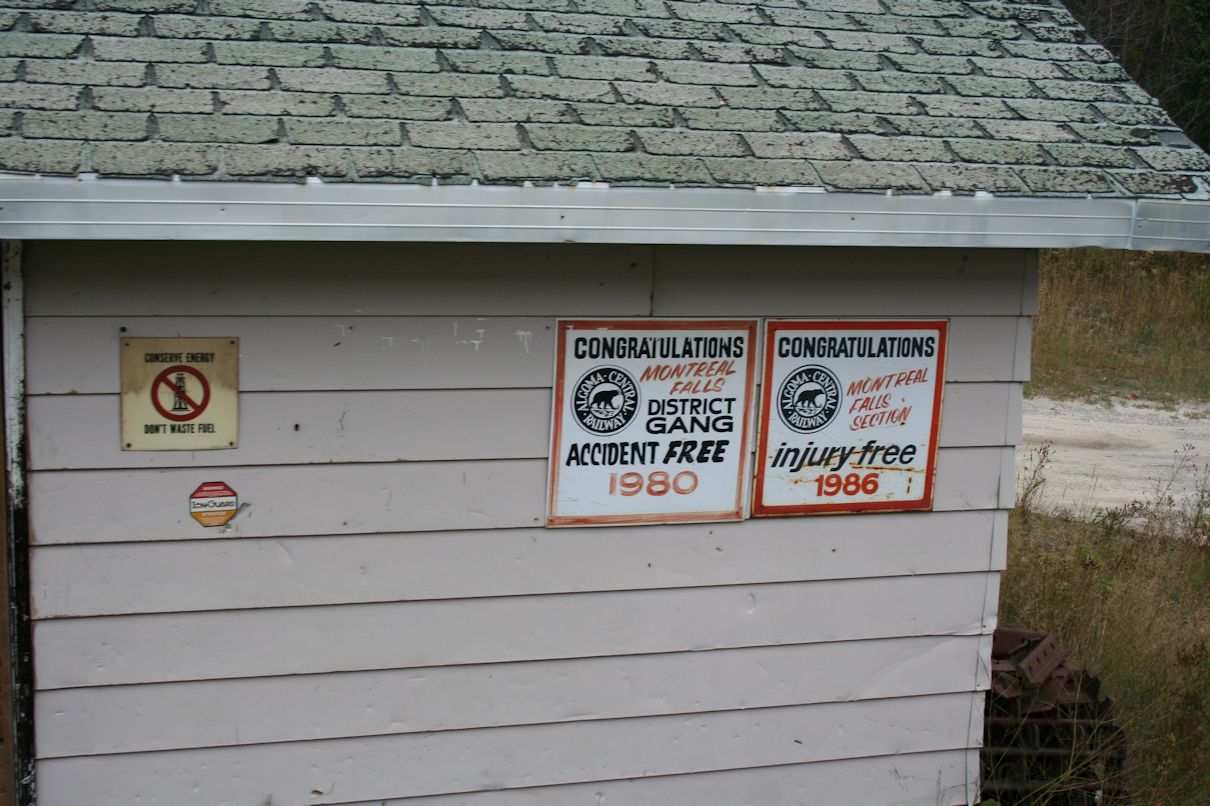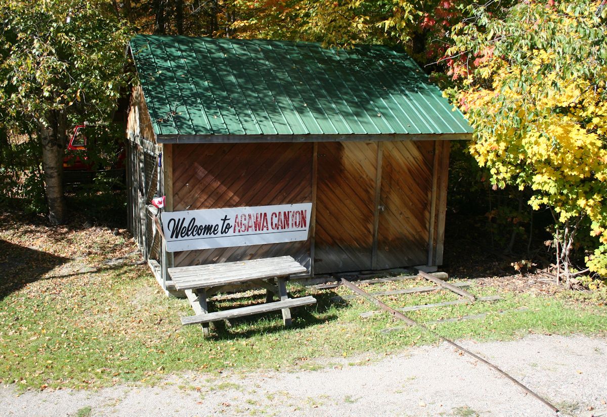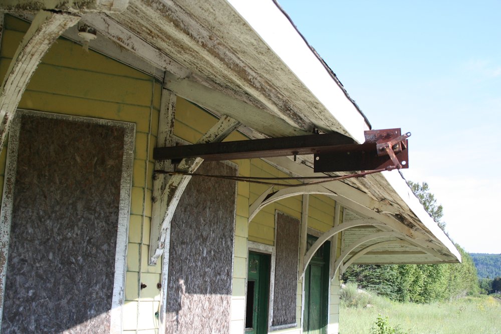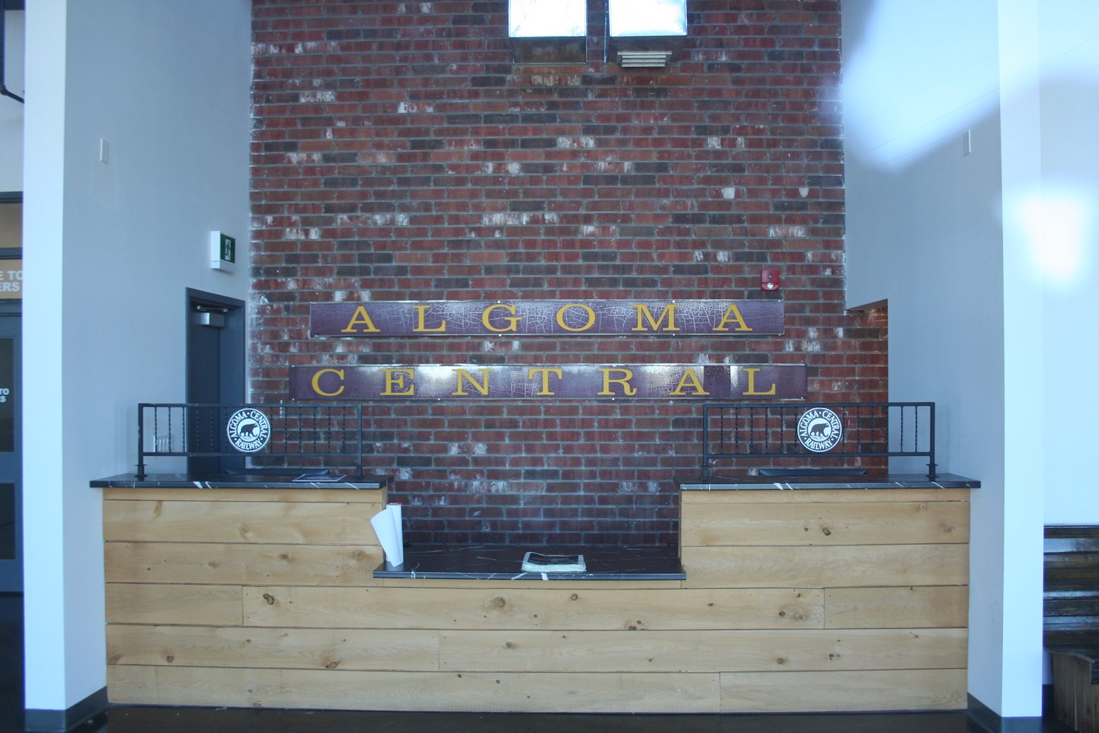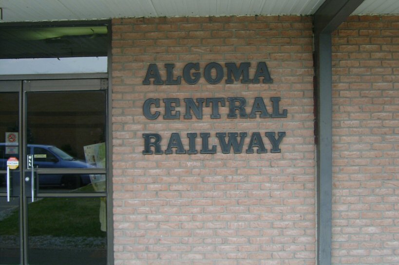 Of interest inside the ticket sales part of the building are the old passenger car name boards displaying the Algoma Central name above the ticket desk.