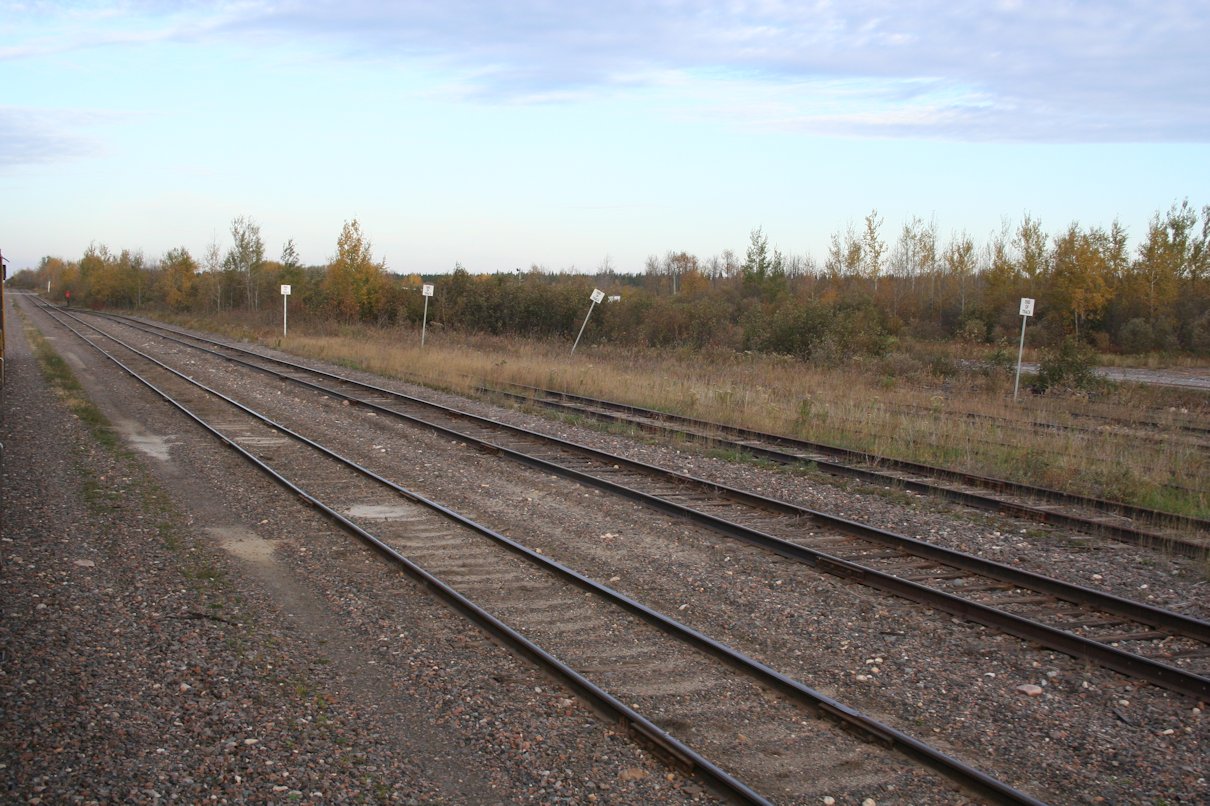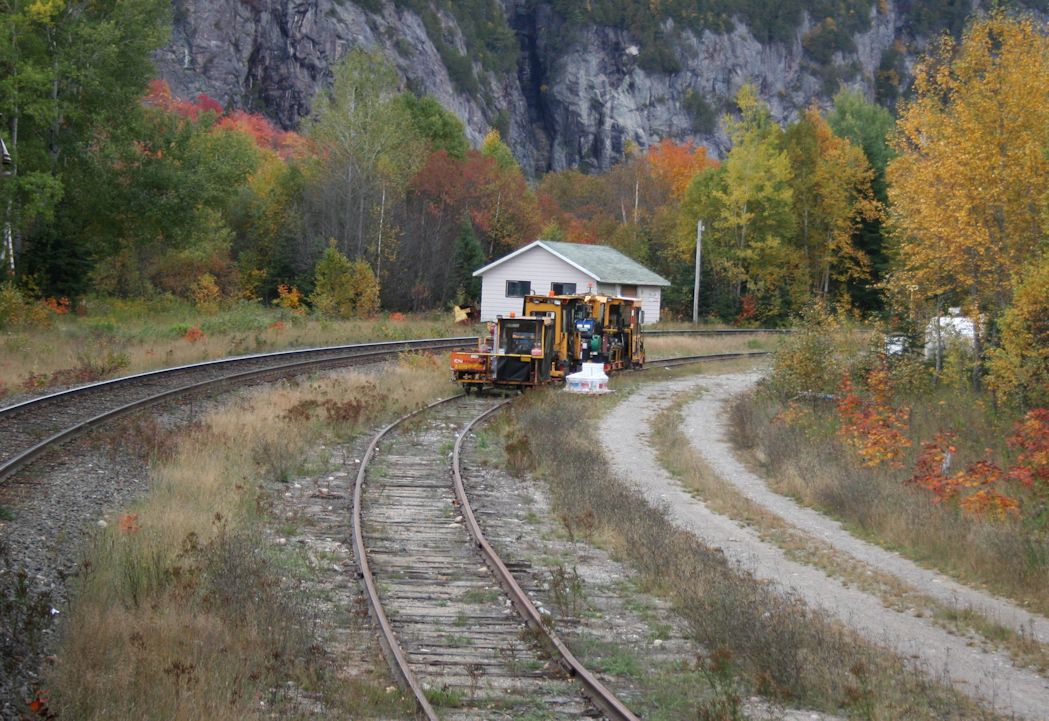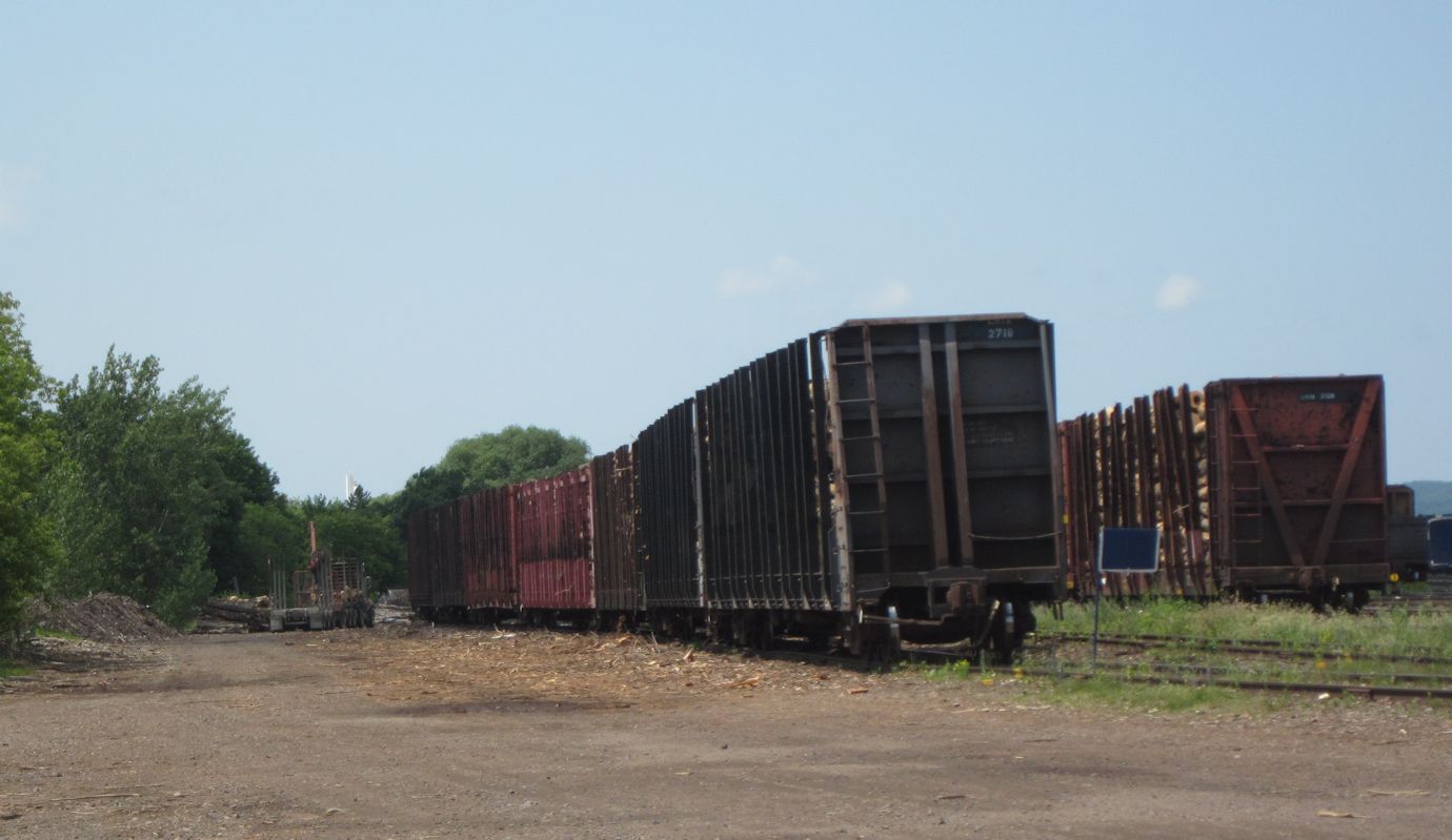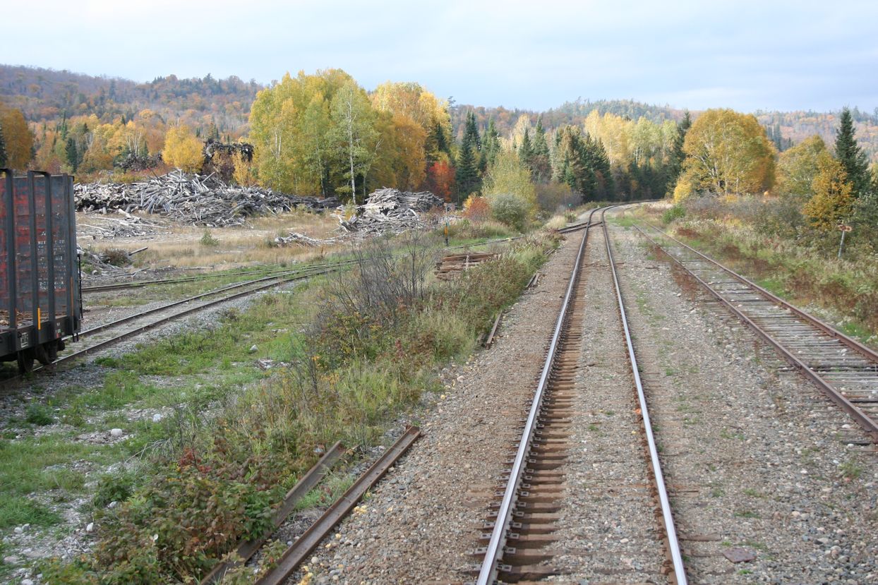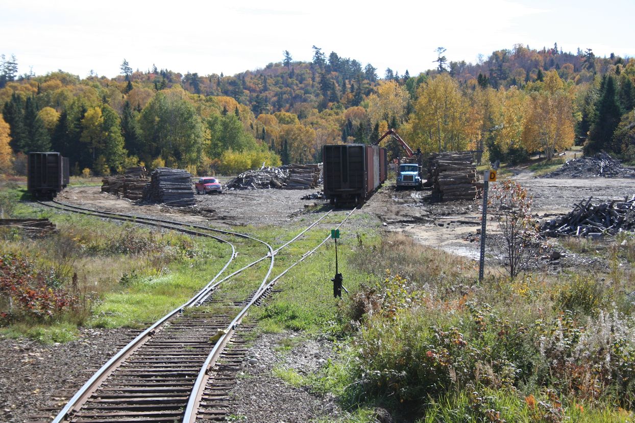 Langdon siding, beginning from the south. This is currently the site of an active pulpwood loading operation. First two images looking north; second two looking south. Notice how the switches for the house track have been removed, but actually the old siding track removed between them, rerouting the siding through the original house track. Langdon 2013 Chris vanderHeide