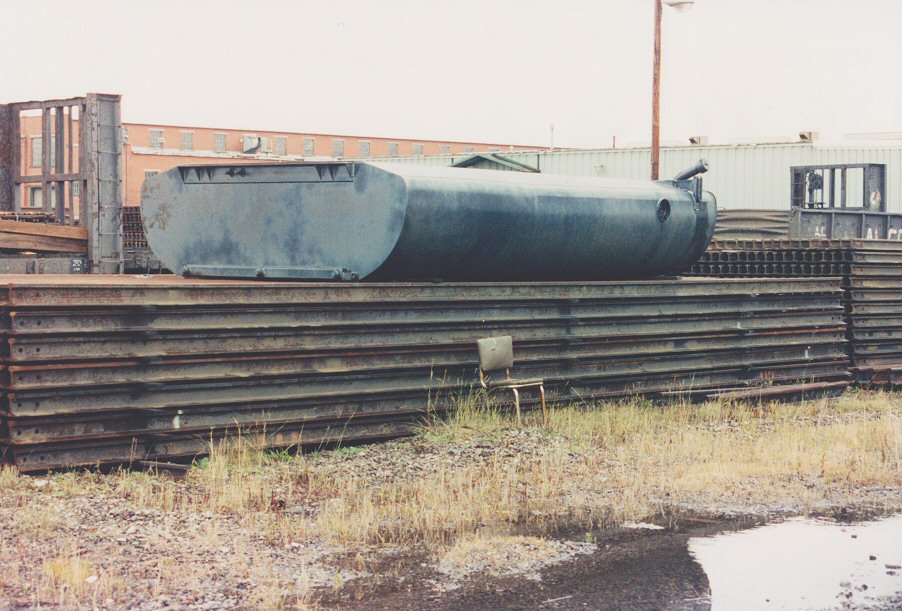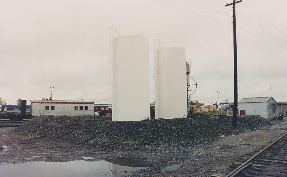 Diesel Tanks Fuel storage tanks at Steelton. Compare to the fuel tank and track scale photos above from several years earlier. Obvious in this photo are the two new tracks run through the northwest side of the enginehouse, and the new concrete containment berm around the fuel tanks. Sault Ste. Marie 2001 Blair Smith