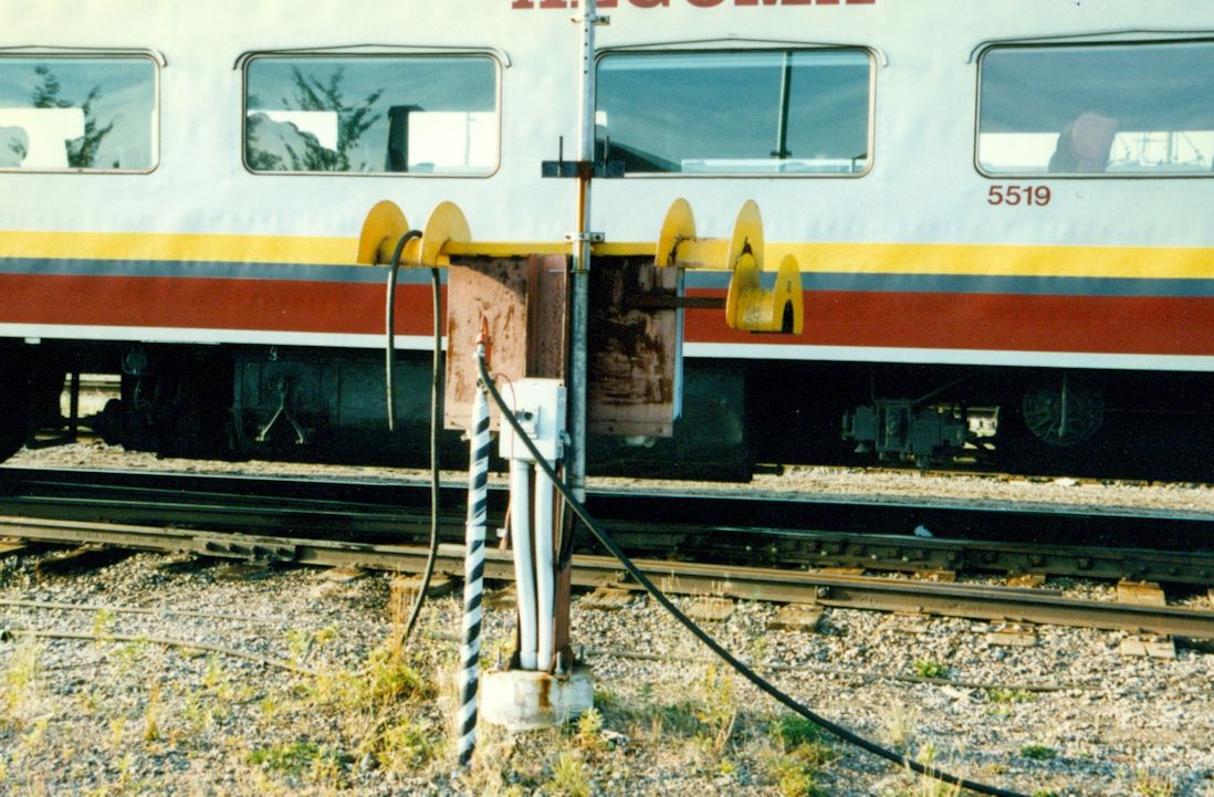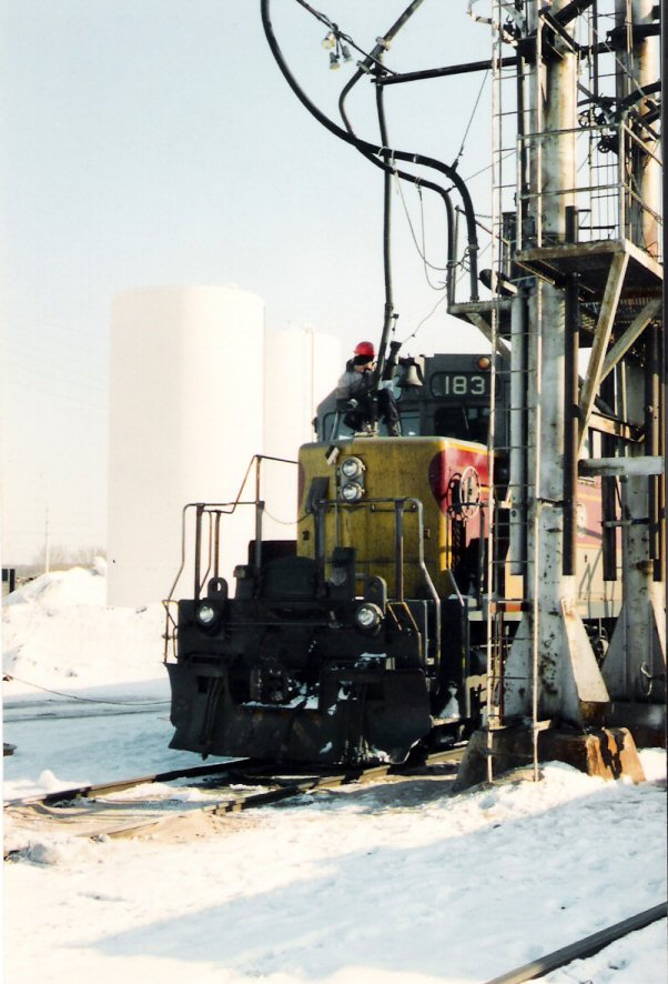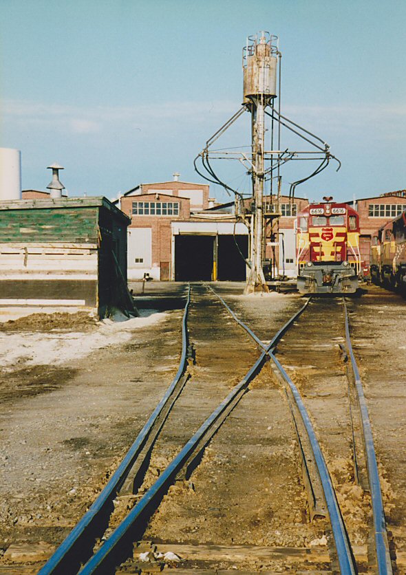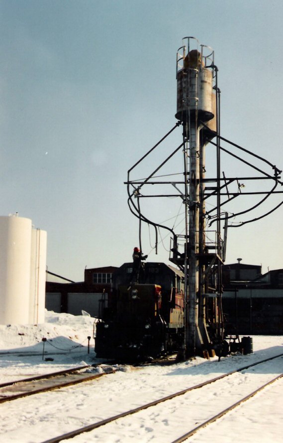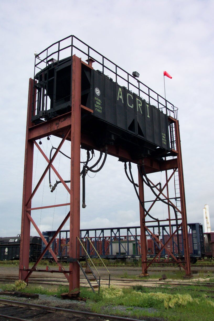 Sand tower and diesel fueling stands at the Steelton servicing facilities. Sault Ste. Marie c1990s Morgan Turney