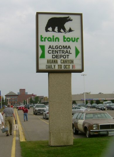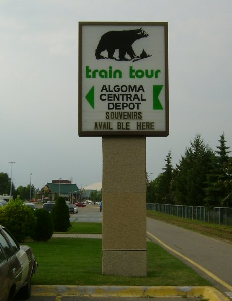 Large advertisement sign post beside the station, both sides. Sault Ste. Marie 2004 Chris vanderHeide