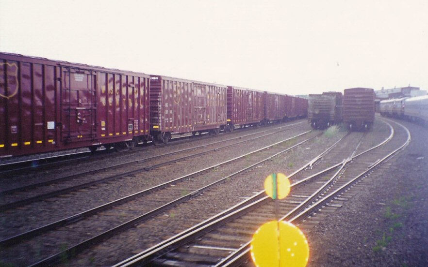 Steelton yard, showing WC era steel and paper traffic. Taken from the Canyon Tour Train. Sault Ste. Marie 2000 Chris vanderHeide