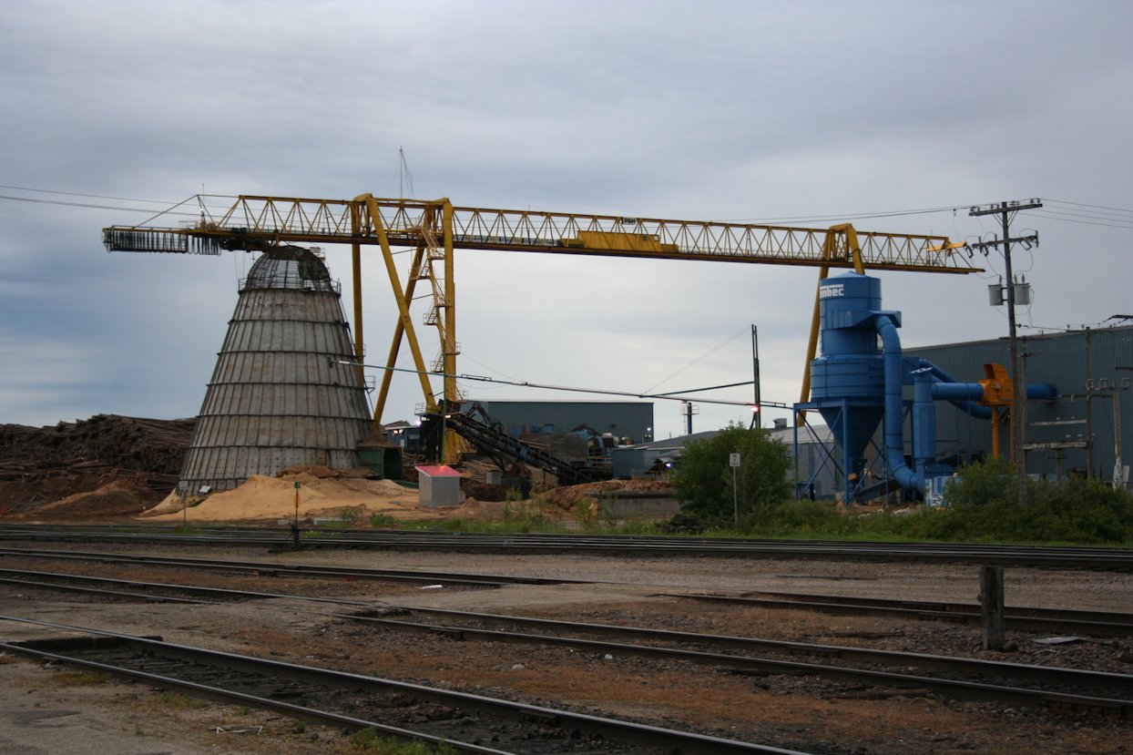 Lumber Mill Relatively clear view of the massive travelling log crane at the Tembec mill at Hearst. Hearst 2015 Chris vanderHeide