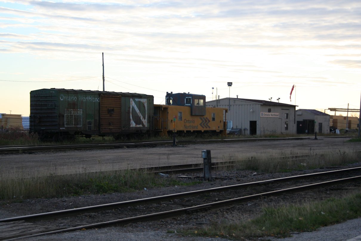 Hearst Ontario Northland boxcar, caboose and maintenance buildings at Hearst. Hearst 2013 Chris vanderHeide