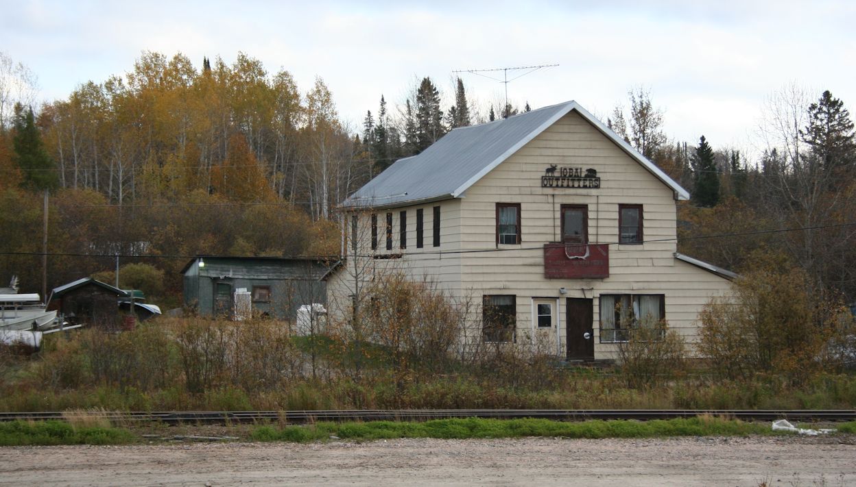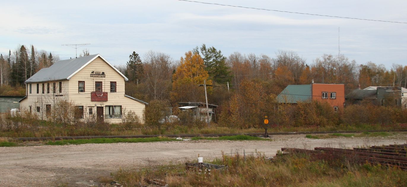 Oba Outfitters. First photo shows relation of the store to the other old storefront buildings above, and the switch to the ACR siding/yard at Oba. Oba 2013 Chris vanderHeide