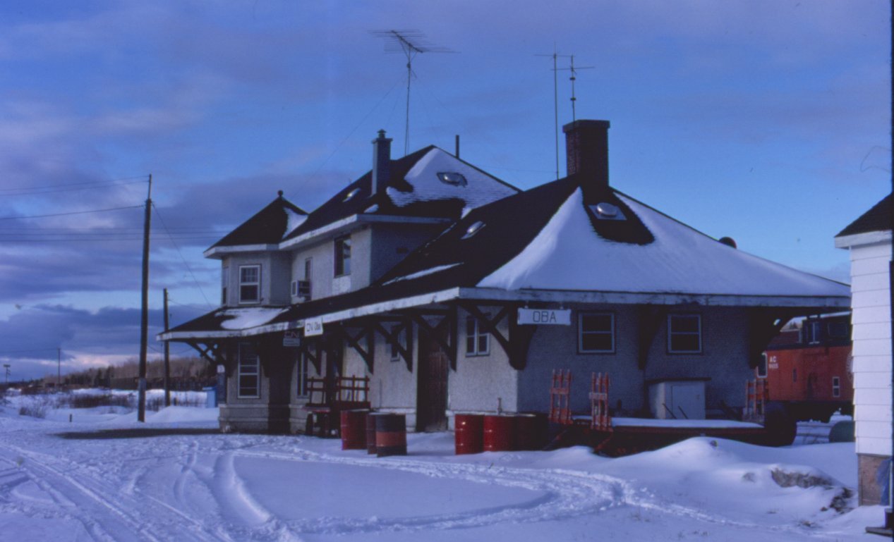 Station Oba station, joint with Canadian National. This structure is an original Canadian Northern design. After the station was closed in the 1990s, it was abandoned and eventually torn down. Oba 1981 Chris vanderHeide Collection