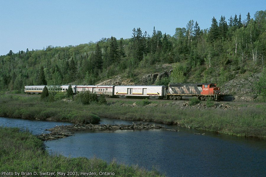 CN 9541 CN GP40-2L with the southbound passenger train, #2 at Hawk Junction. Hawk Junction 2003 Brian Switzer