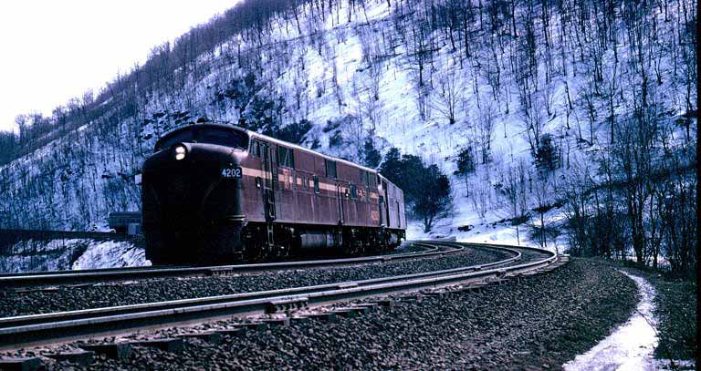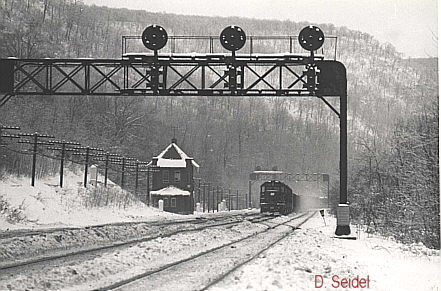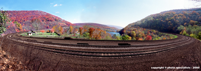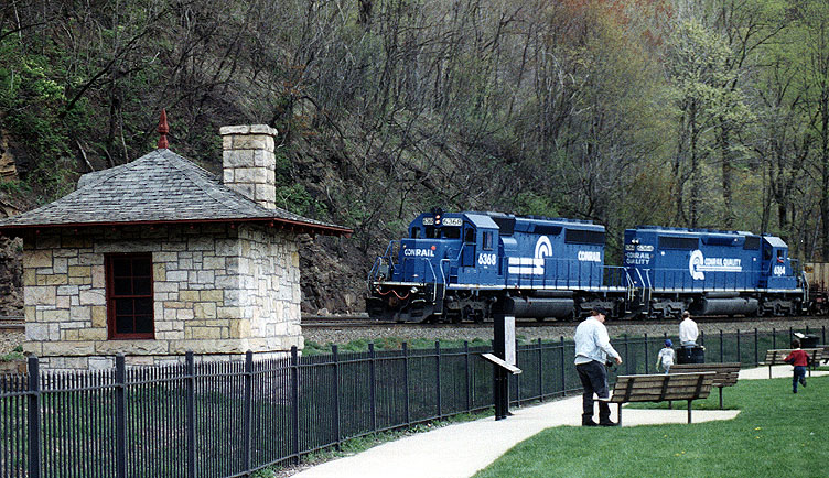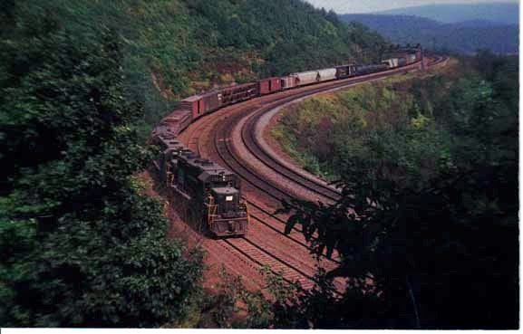 (used with permission; copyright: Kirk Leidy of Photo Specialists, Altoona, PA)On February 15, 1854, a single track was laid from Altoona to "Summit" and operations began. Over time, it grew to 2 to 3 to 4 (and now back to 3) tracks. It is now part of Norfolk Southern's Pittsburgh Division.