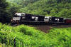 Eastbound Helper Engines pass the watchman's shanty at the Horseshoe Curve Park on 4/24/1998