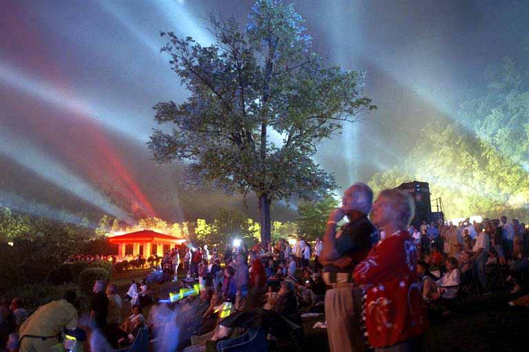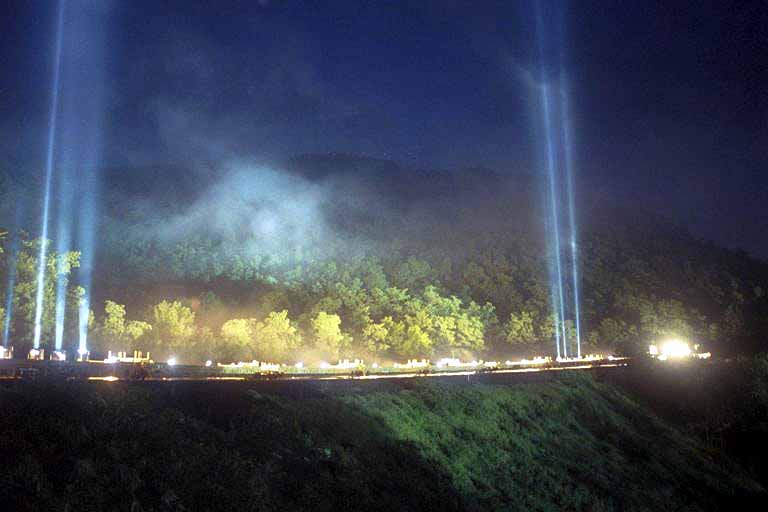 Many have said that because of the trees, the people at the Visitor Center level will not see anything. That could not be farther from the truth. This is not about being able to see the train. There is not that much to see. The 7000 watt searchlights are the same type of lights used at the World Trade Center memorial and will be pointed straight up. The hillsides surrounding the Curve will be lit and certainly the fireworks can be seen from anywhere. Also, If you haven't been to the Curve in a while then you would know that the statement about trees not being cut is untrue. The bank on the east side has been clear-cut from the visitor center to the signal bridge and more of the trees on our property (the big pines) are coming down." (Comments from Scott Cessna)