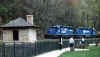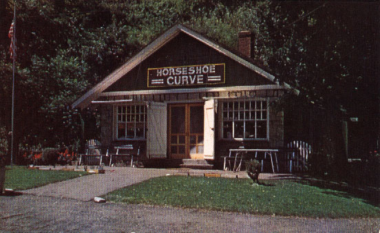 Horseshoe Curve Visitors Center; The former Kittanning Point Station is located at milepost 240.9. The station is long gone but a signal tower marks its location. Note: See photos of PRR K-4s #1361 being removed from the curve in the K-4 Restoration Page.