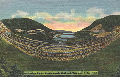 Many professional sports teams formerly traveled by rail to compete, and the Horseshoe Curve was directly on the route used by many ball clubs, including the Pittsburgh Pirates, New York Yankees, Brooklyn Dodgers, Philadelphia Phillies, Cleveland Indians, St. Louis Cardinals and Cincinnati Reds. The Liberty Bell also traversed the "Curve" four times en route to displays or exhibitions in the West and South in 1885, 1893, 1904 and 1915." (Norfolk Southern Public Relations, 12/18/98)