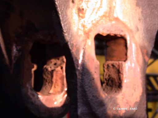Close-up Of The Inner And Outer Gib And Bushing Pockets. One Can Clearly See The Wear. The New Shaper Will Be Used To Reshape The Pockets After Buildup By Welding.
