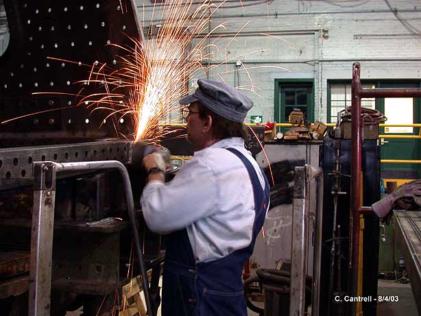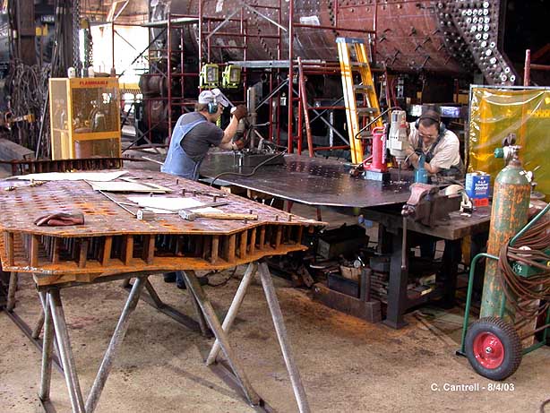 Volunteer Tom Diehl Doing Final Drill Work On Outside Firebox Sheet.