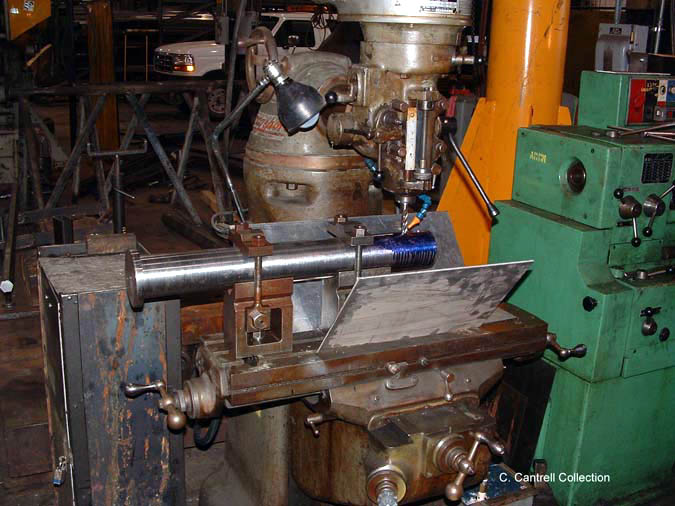 Pony Truck Bolster Pin Mounted In Milling Machine Prior To Milling Pin Slot. |