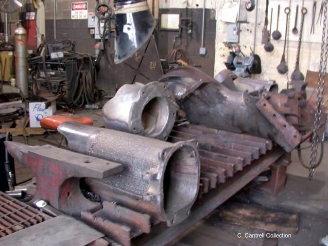 Firebox Doors After Sandblasting Are Readied For Repairs. |