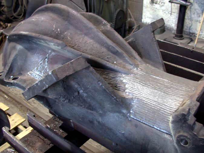 Build Up Of Ball Section Of Stoker Tube. Note Bracing Applied To Prevent Warping