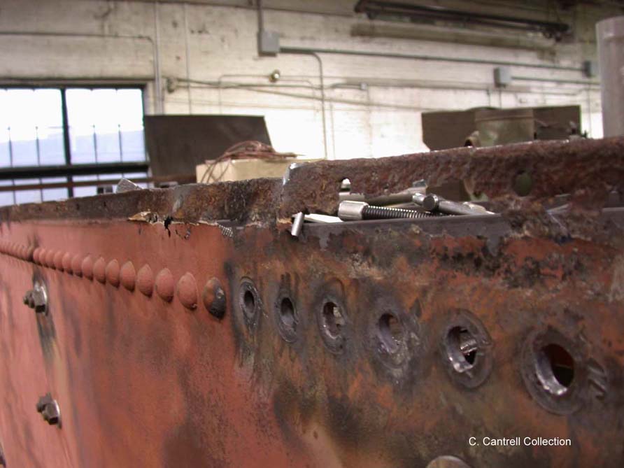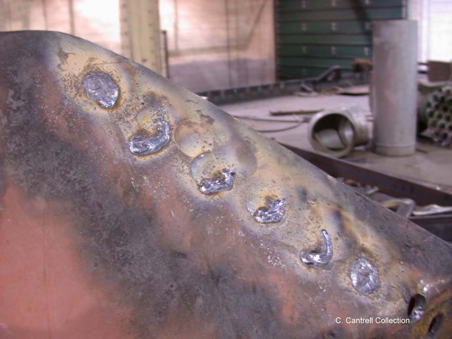 the tender, the rivet holes are welded shut. The weld will be ground flat