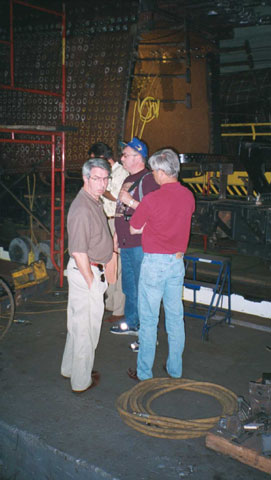 On 6/9/00 Bob Lamorte (Museum Board President), Jim Logrando (Vice President), Gary Price (Secretary), Board Members Dick Charlesworth, Andy Mulhollen, Frank and Karin Givler (Chapter Members & V.P. and Secretary of the Keystone Restoration and Preservation) as well as Cummins McNitt, ventured to Steamtown to check out the K4. Andy reported it was a beautiful day. They met Chris Ahrens and Jeff Miller and had lunch at the Ground Round in the Mall. "It was mostly a Q&A session. Then Cummins met with the Director of Steamtown to begin to talk about future plans and getting her home. The rest of us got an up close look at what they are doing. Looks like everything is on track so far for completion fall 2001." Photos are available on the K-4 photo page. (Submitted by Andy Mulhollen 6/20/00; posted 6/20/00)
