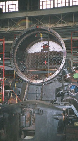 Regarding the axles/driving mechanism, one driving axle needs replaced. One crank pin is also in poor shape...they hope to be able to machine this. They are trying to find someone to do the "quartering" for the driving mechanism/axles. As I understand it, the crank pins on each side are exactly 90 degrees offset. Quartering sets the stroke for all crankpins. If the stroke is off, even a little bit, overheating, journal problems, etc could result. A factor in trying to find someone to do the work is that the K-4 has a "left hand lead". Most steam engines are "right hand lead." As a result, most machinery is set up for "right hand lead." After the axle is done, and they find a contractor, the wheels/axles will be shipped.
