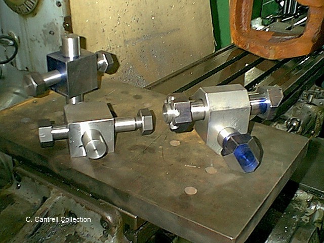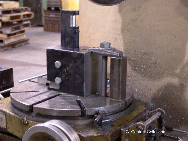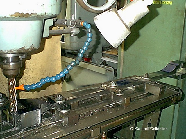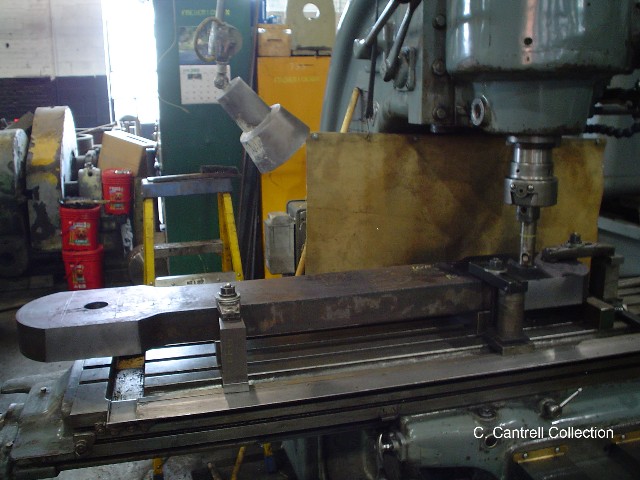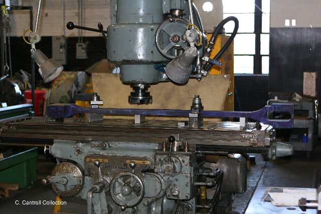 75. The bar stock mounted in the Kearney and Trecker mill for milling. |