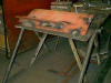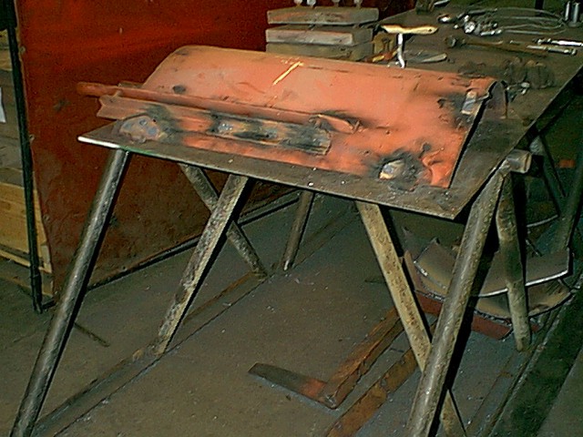 50. The old tender tool compartment door undergoes dismantling for salvageable parts. |