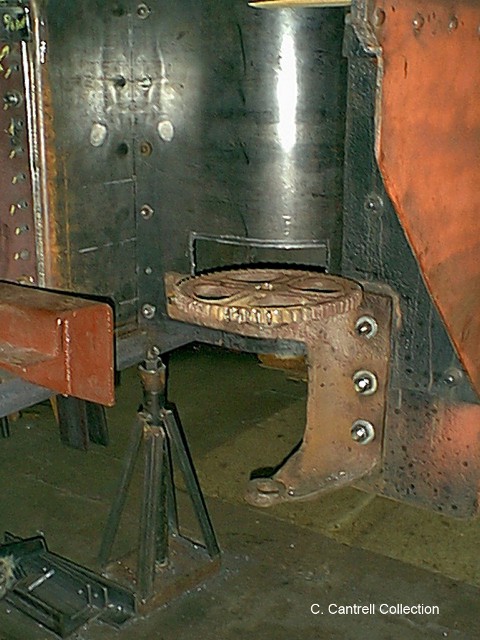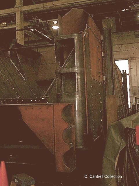 60. Bracket for tender coal bunker door hinges and tool compartment doors being installed on the tender. |