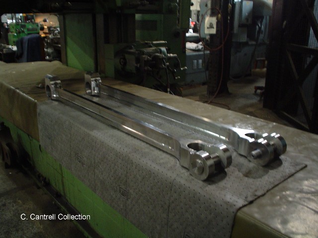67. The completed eccentric rods after installation of grease fittings. The completed rod s weigh 49 pounds a peace after machining. That’s 791 pounds less than they started out weighing. It took 400 hours to manufacture the rods. |
